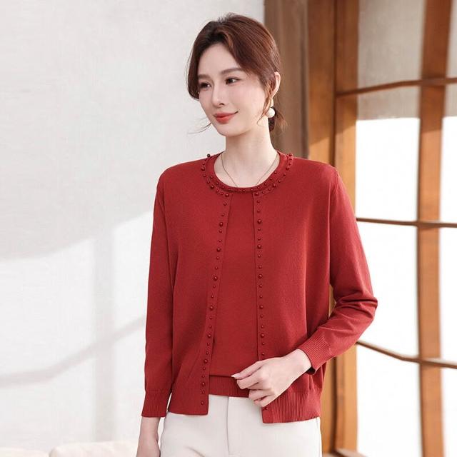 §雲溪§ 2026媽媽春裝新款外套40歲50中年婦女長袖上衣中老年人針織兩件套