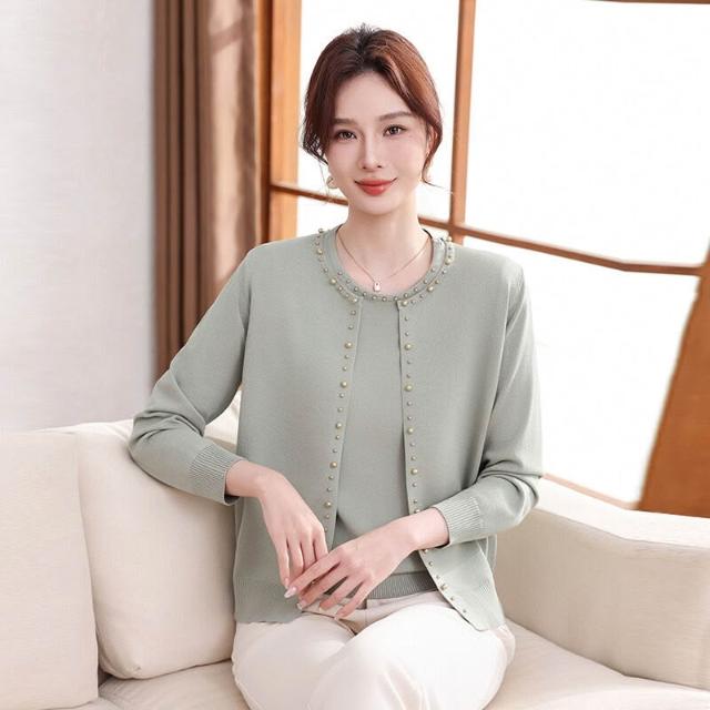 §雲溪§ 2026媽媽春裝新款外套40歲50中年婦女長袖上衣中老年人針織兩件套