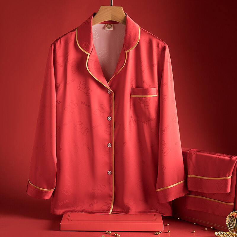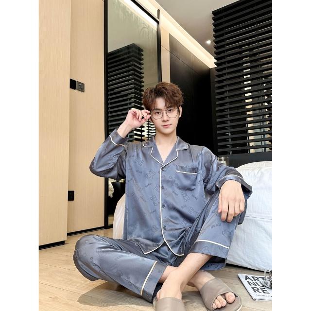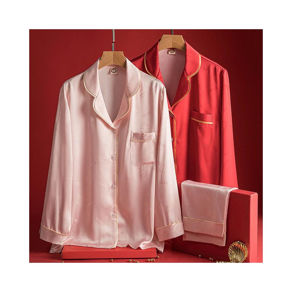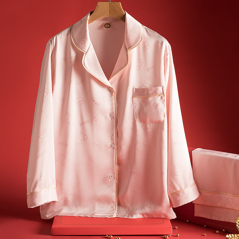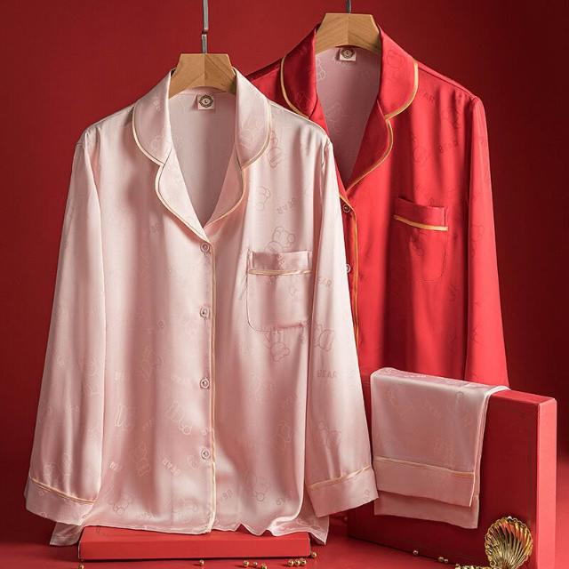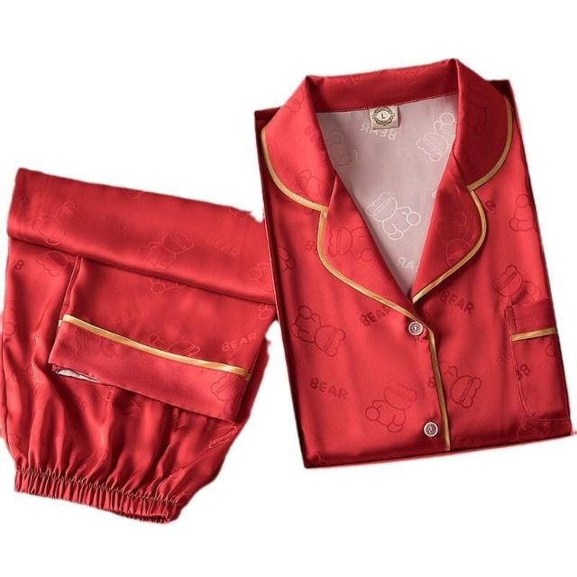 雲溪 睡衣女士春秋冰絲高級感長袖家居服薄款卡通小熊空調服套裝秋1160