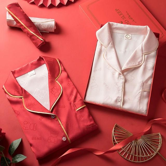 雲溪 睡衣女士春秋冰絲高級感長袖家居服薄款卡通小熊空調服套裝秋1160