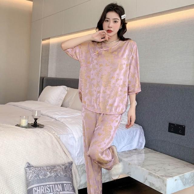雲溪 古風睡衣女夏季新款時尚簡約高級感甜美新中式家居服套裝薄款夏天