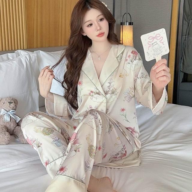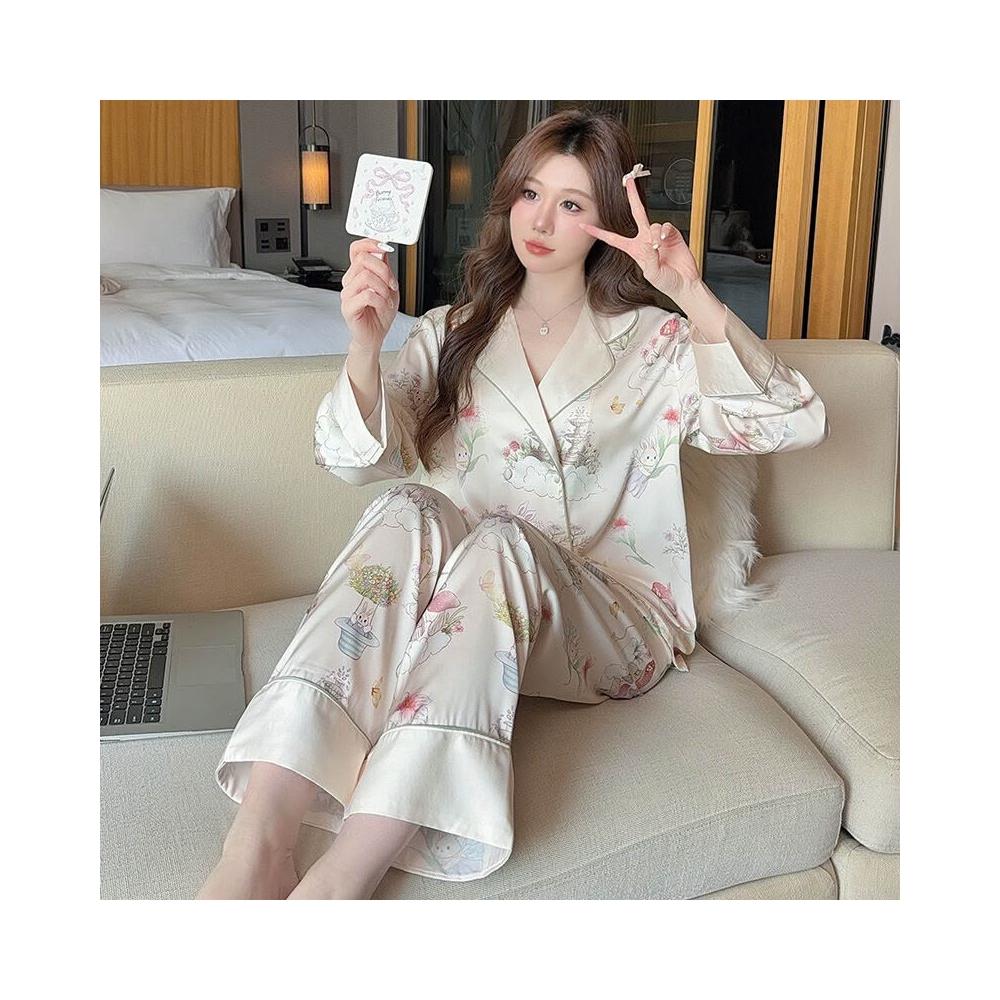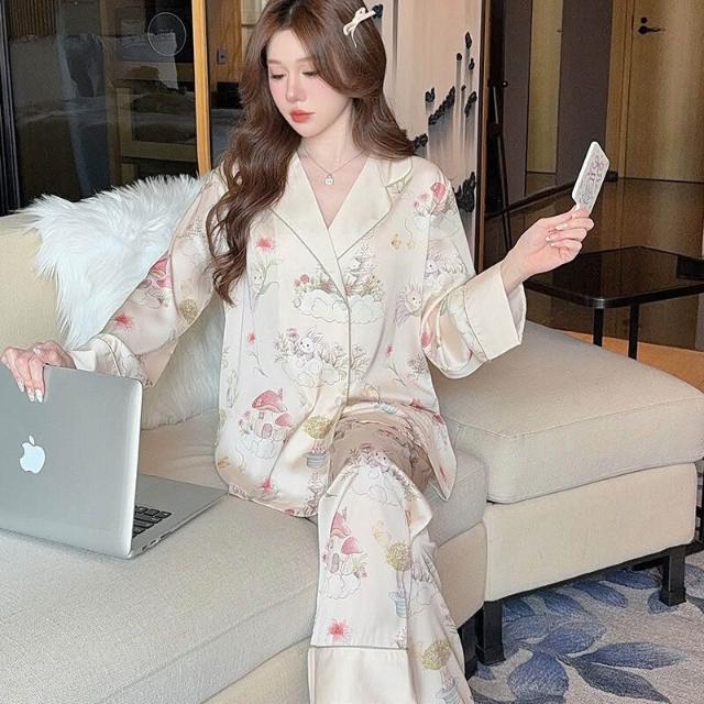 雲溪 冰絲睡衣女春秋季長袖夏天薄款2025新款高級感絲綢家居服開衫套裝