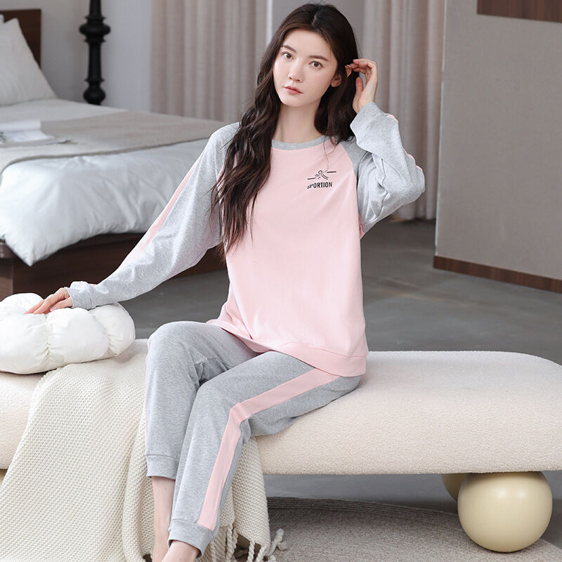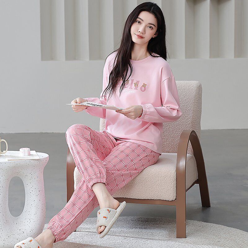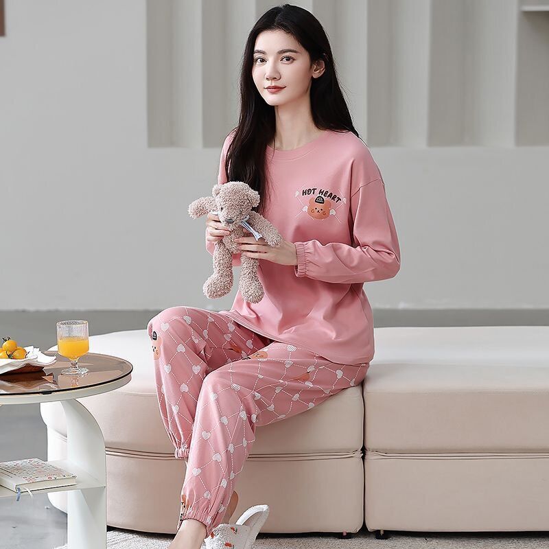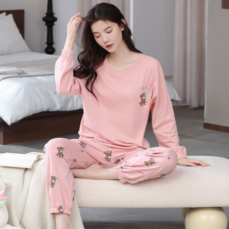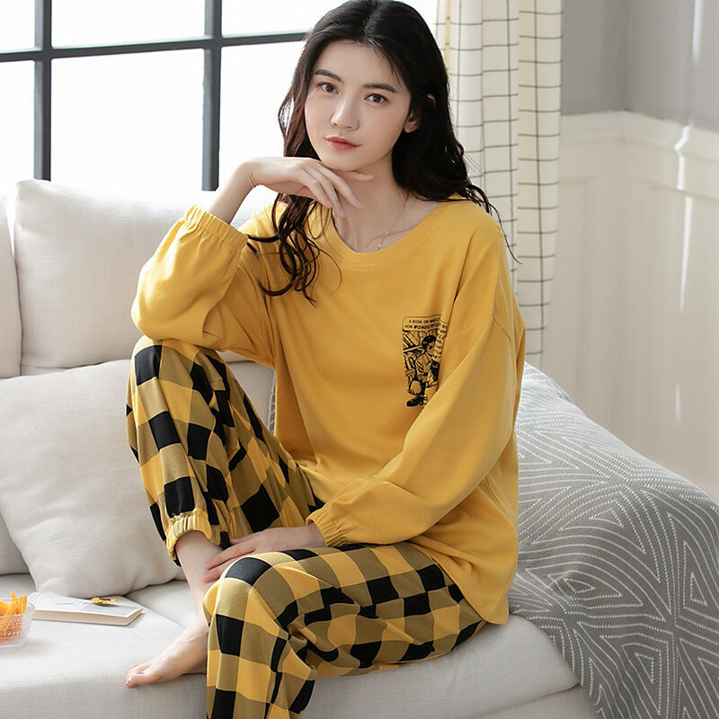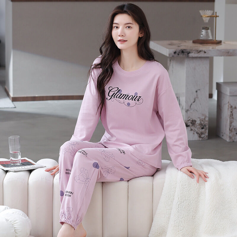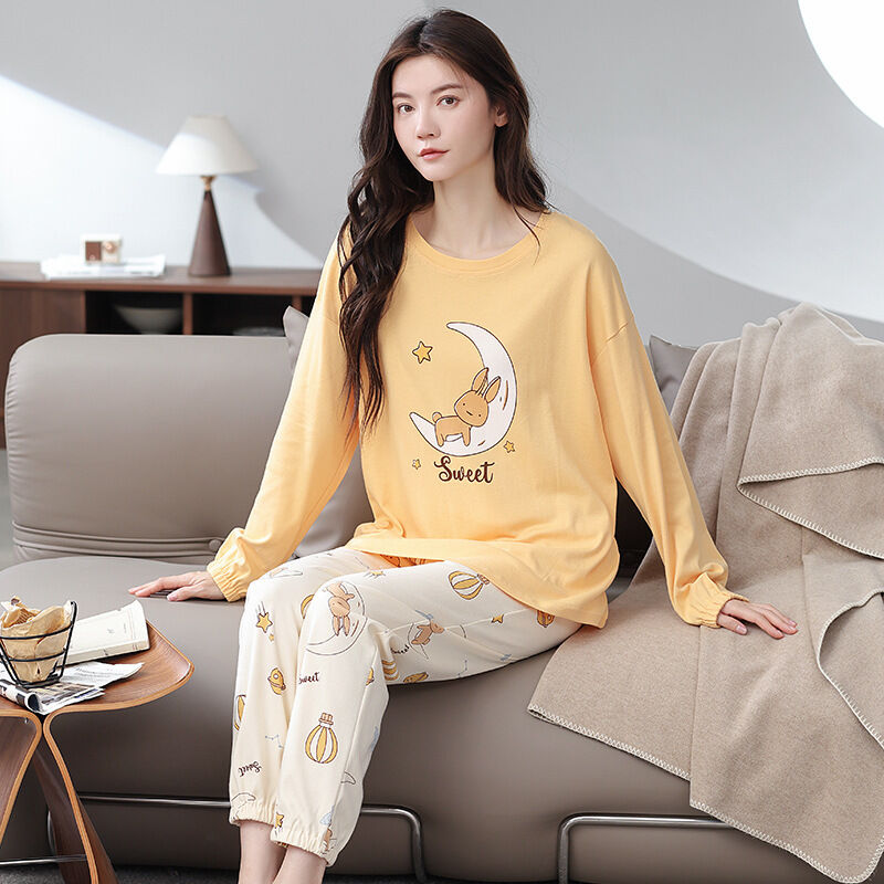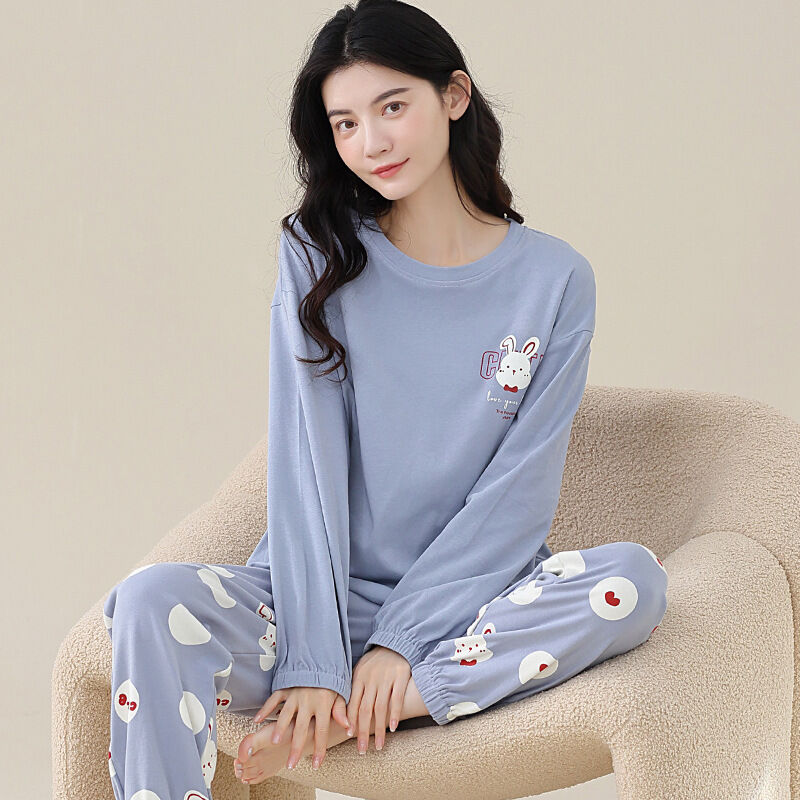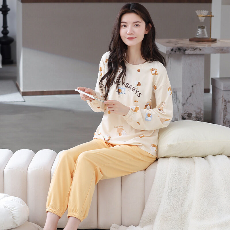 雲溪 全棉加厚睡衣女士春秋季套頭長袖長褲純棉圓領ins風高級感家居服