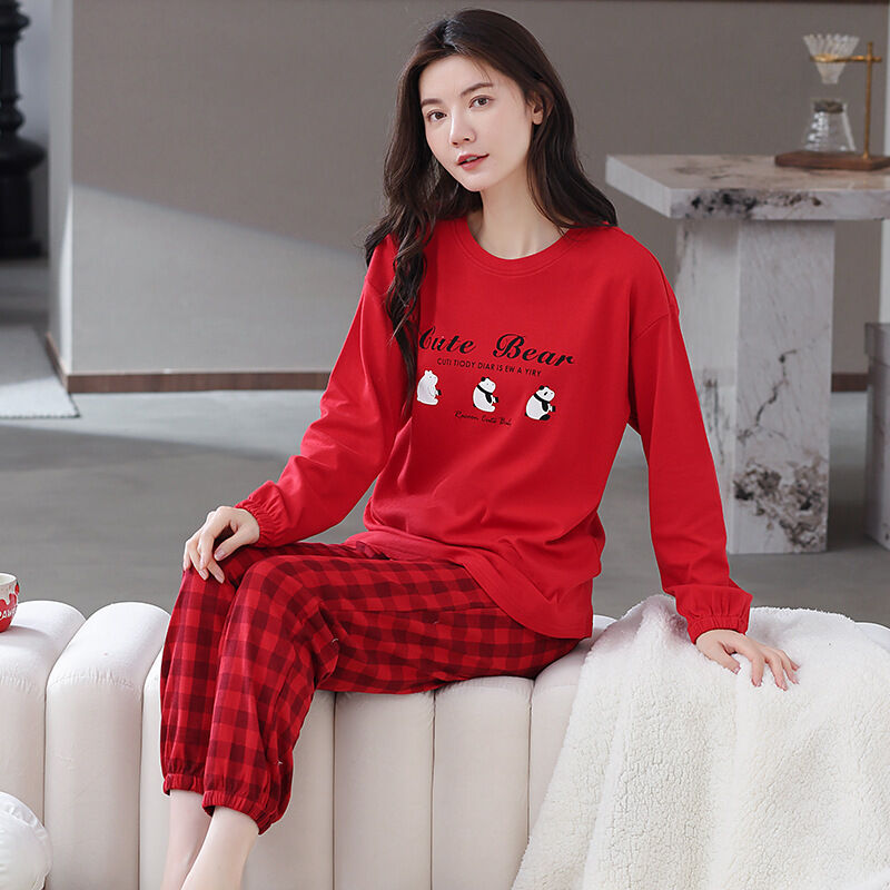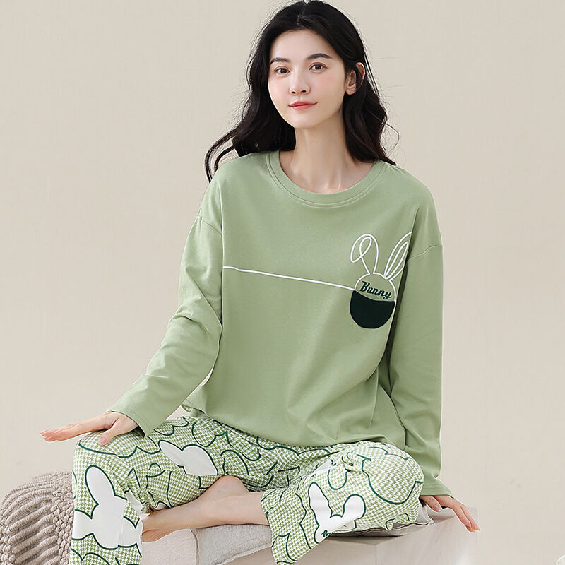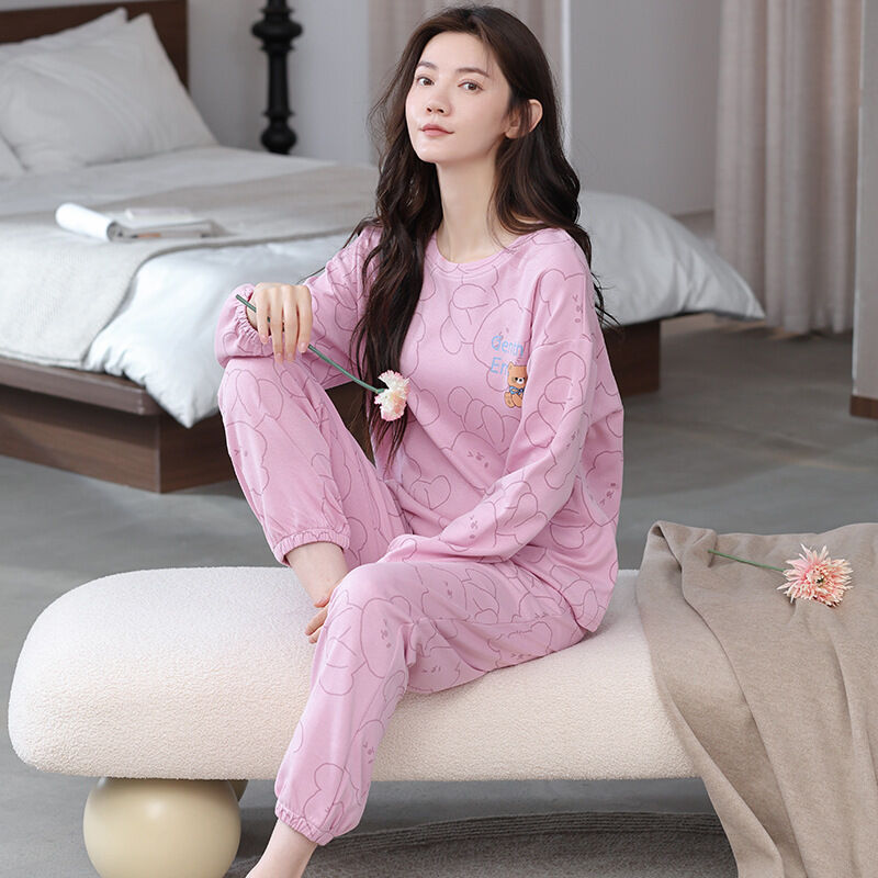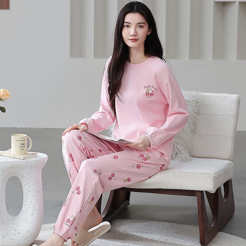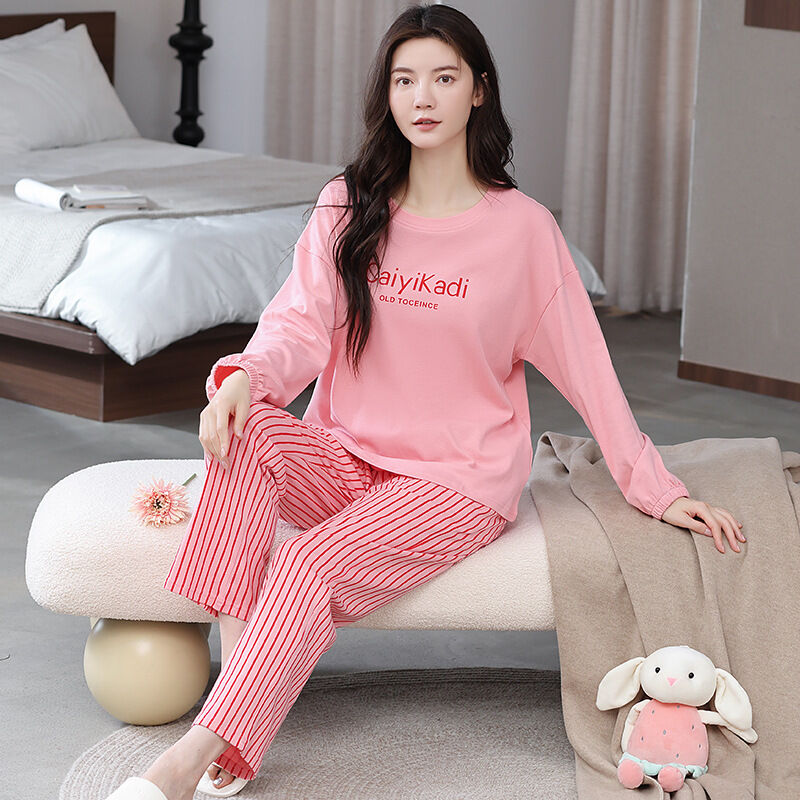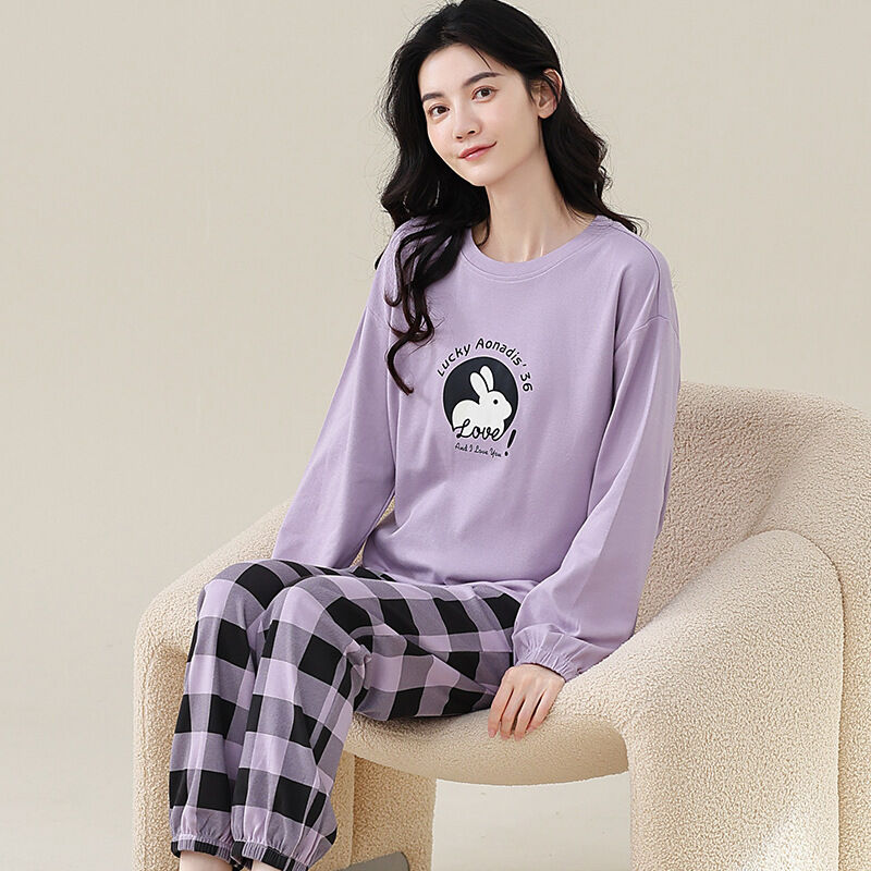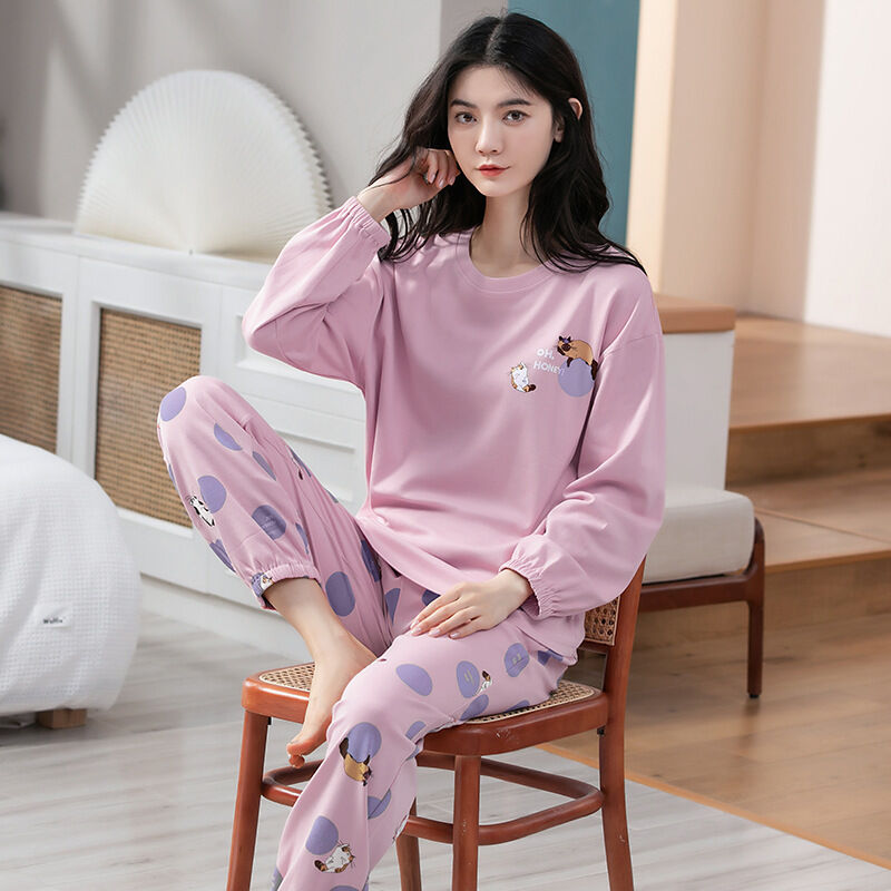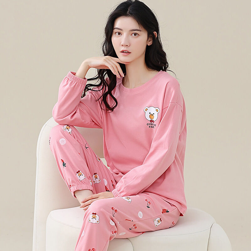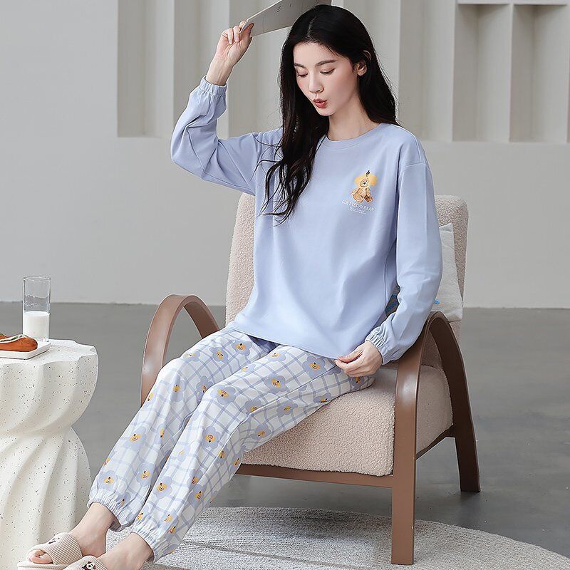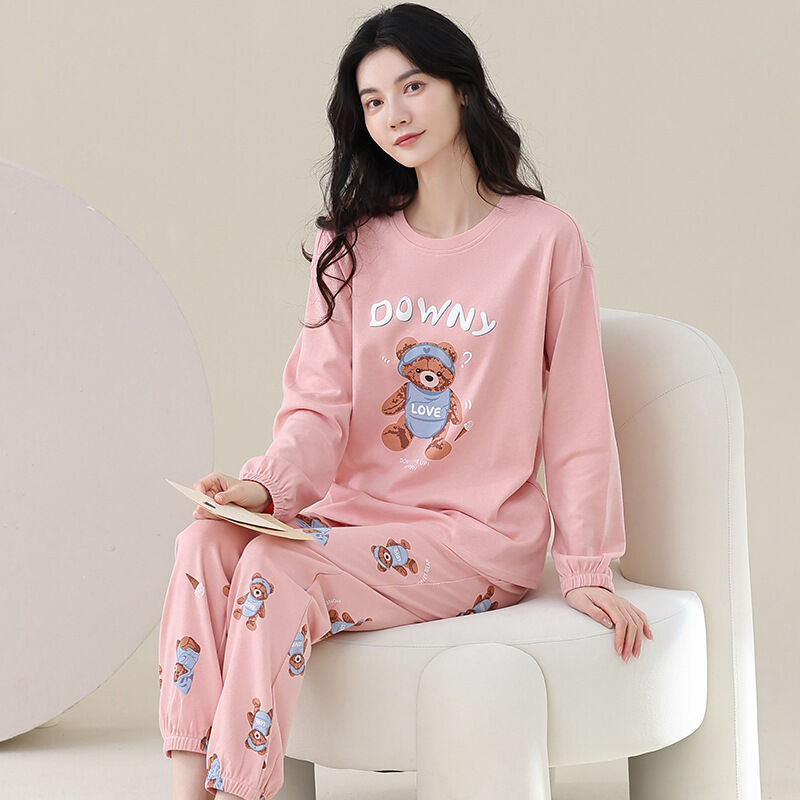 雲溪 全棉加厚睡衣女士春秋季套頭長袖長褲純棉圓領ins風高級感家居服