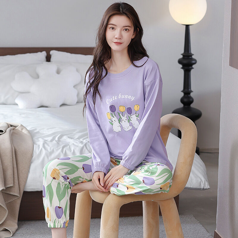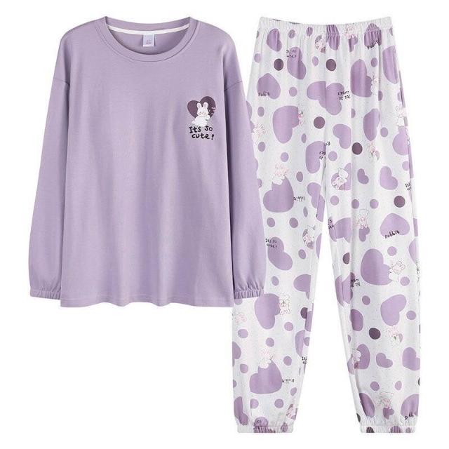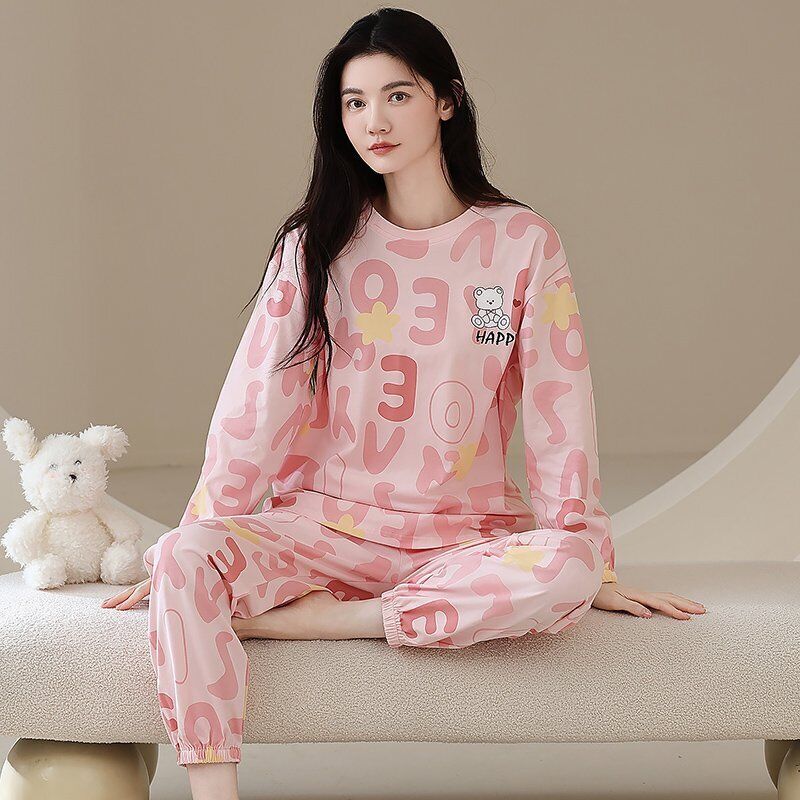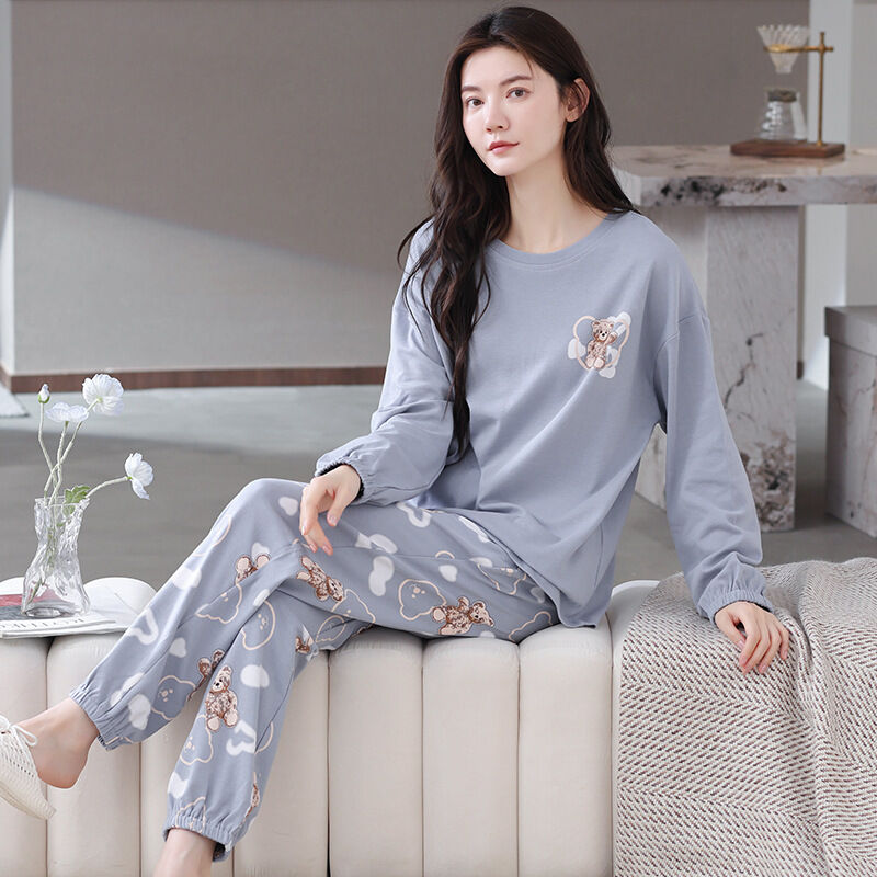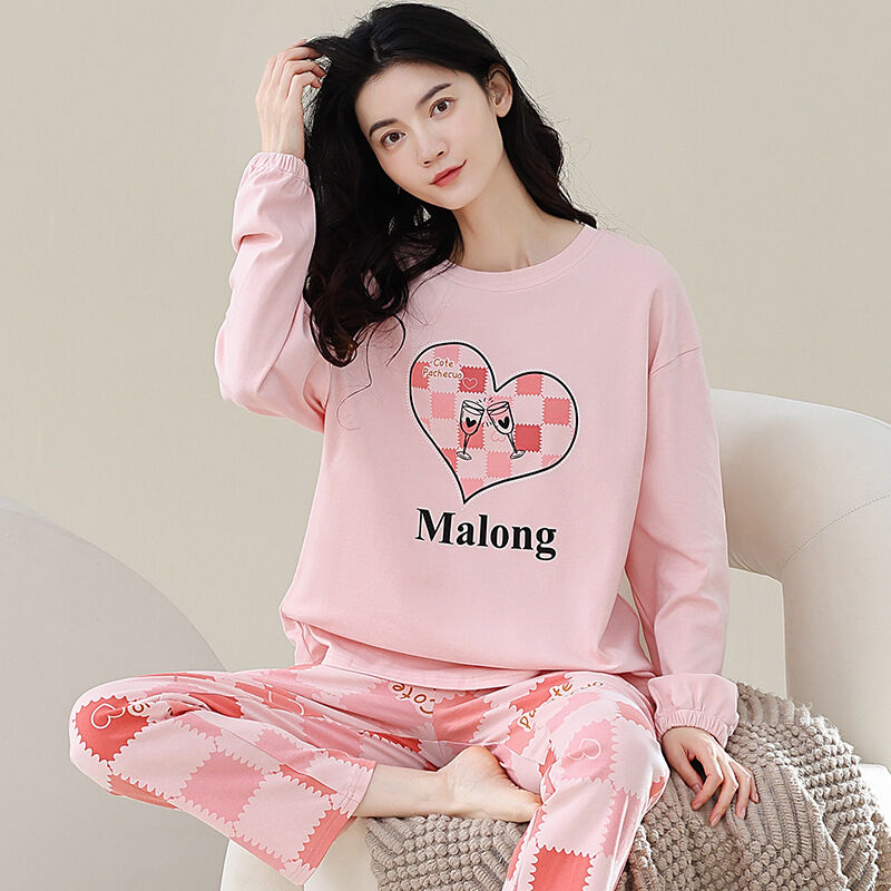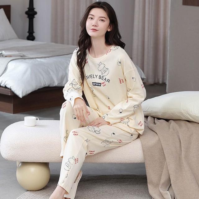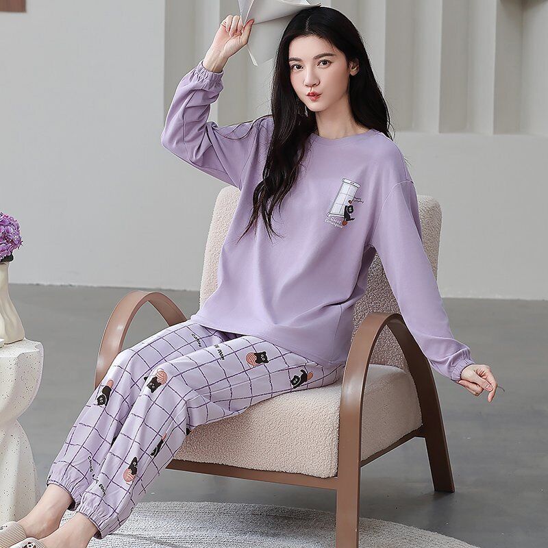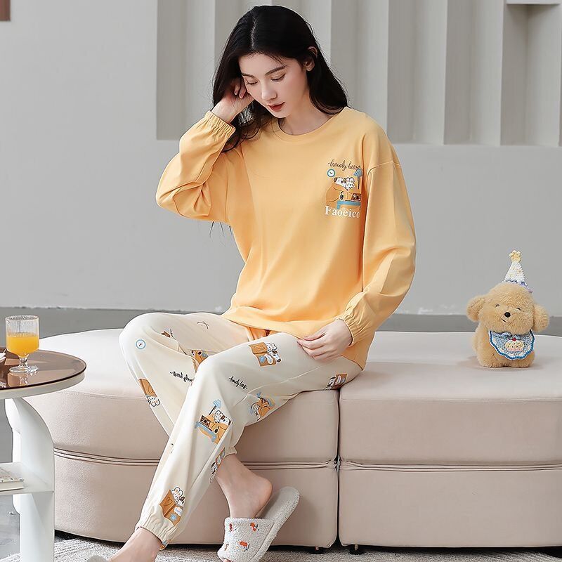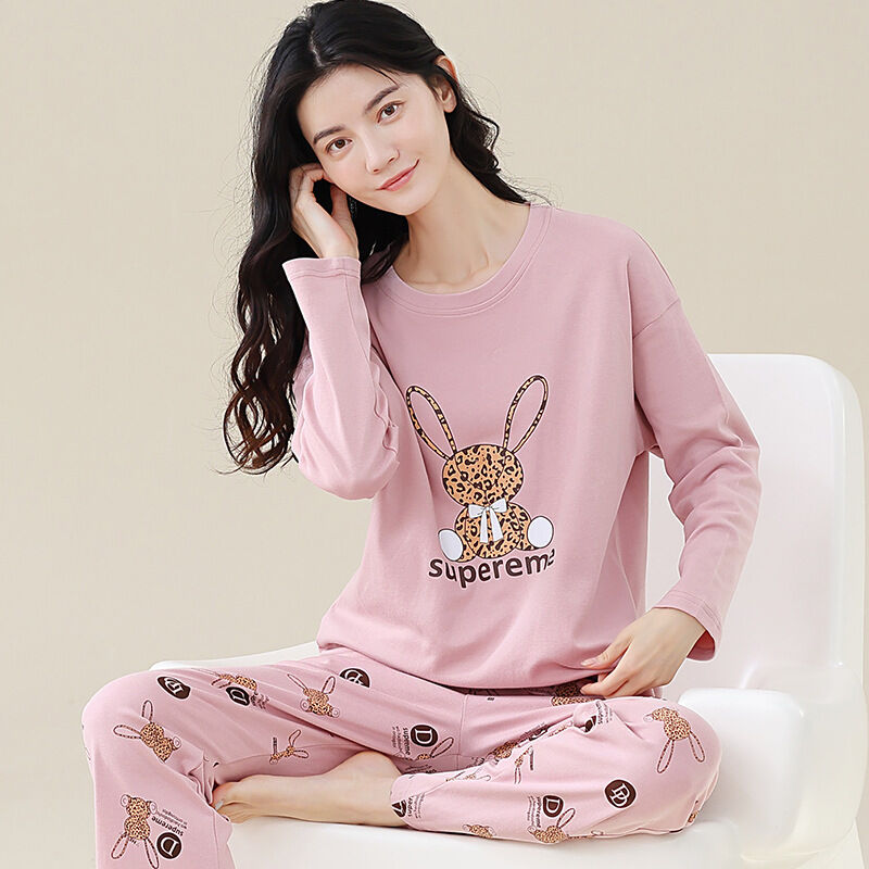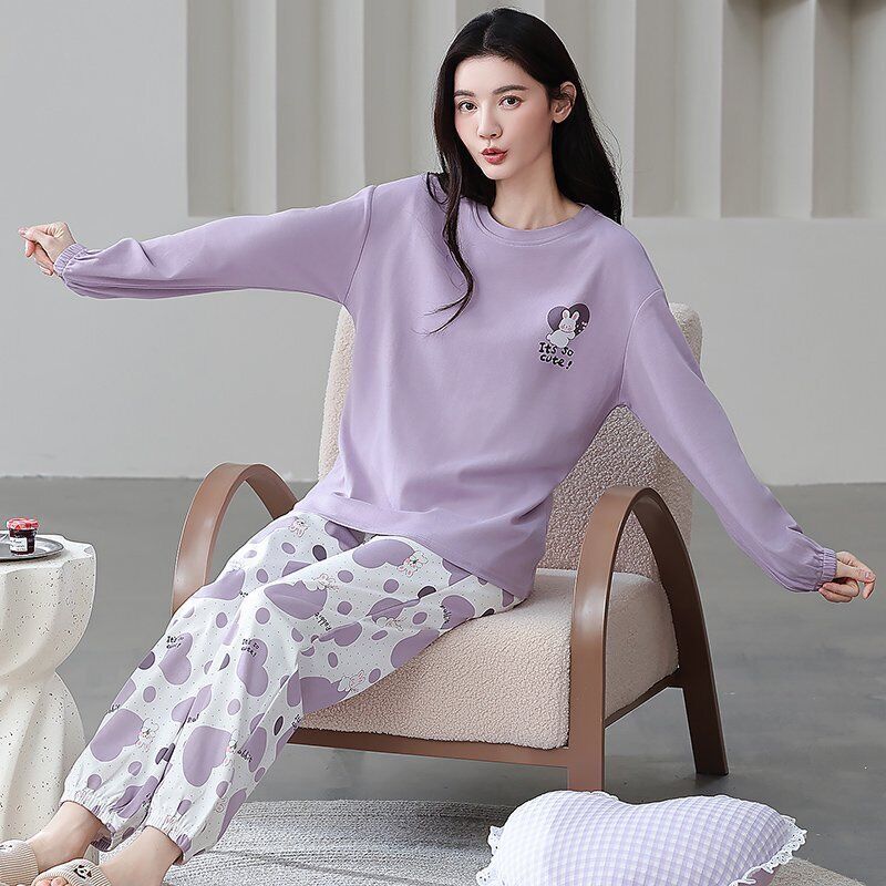 雲溪 全棉加厚睡衣女士春秋季套頭長袖長褲純棉圓領ins風高級感家居服