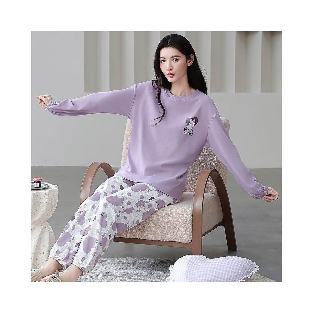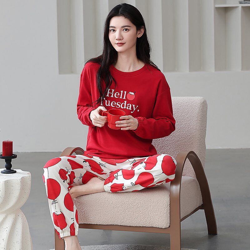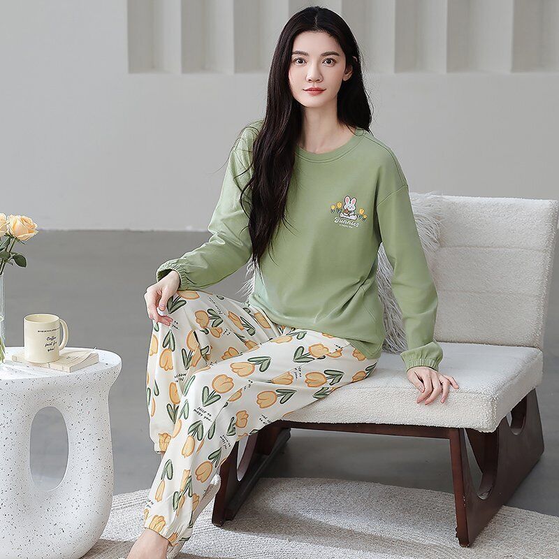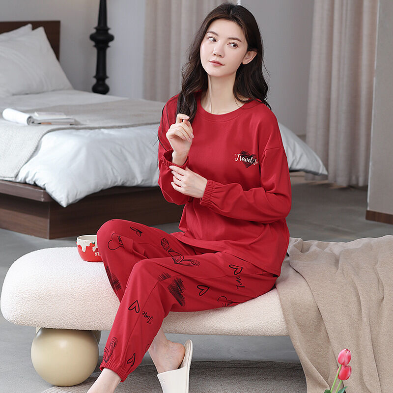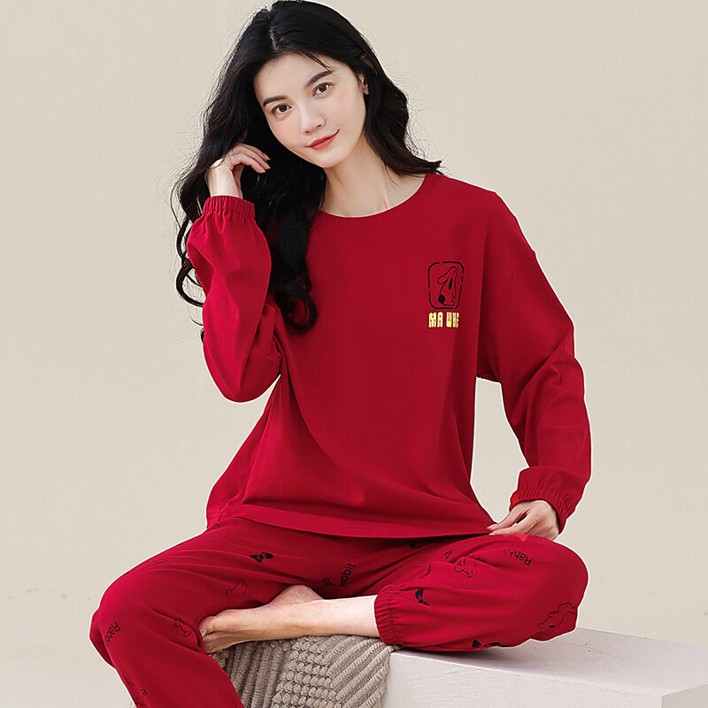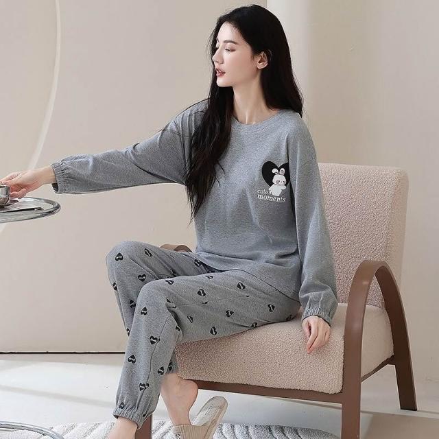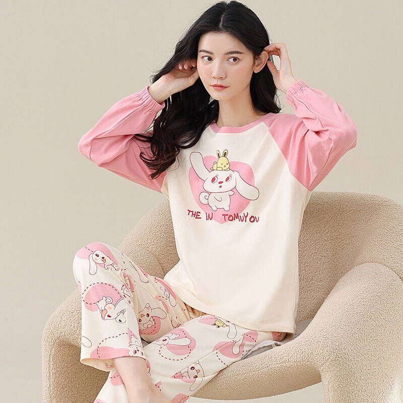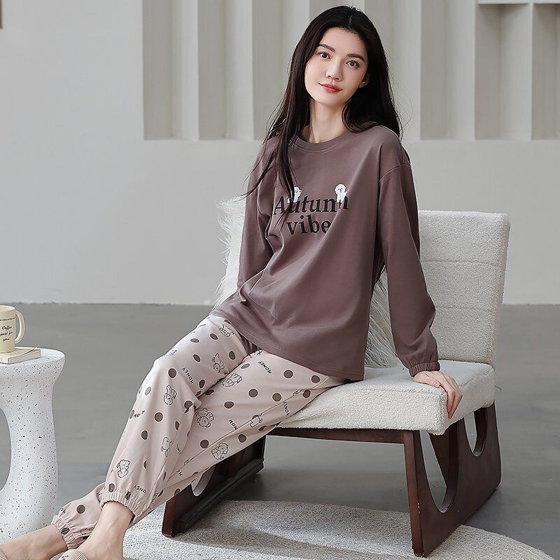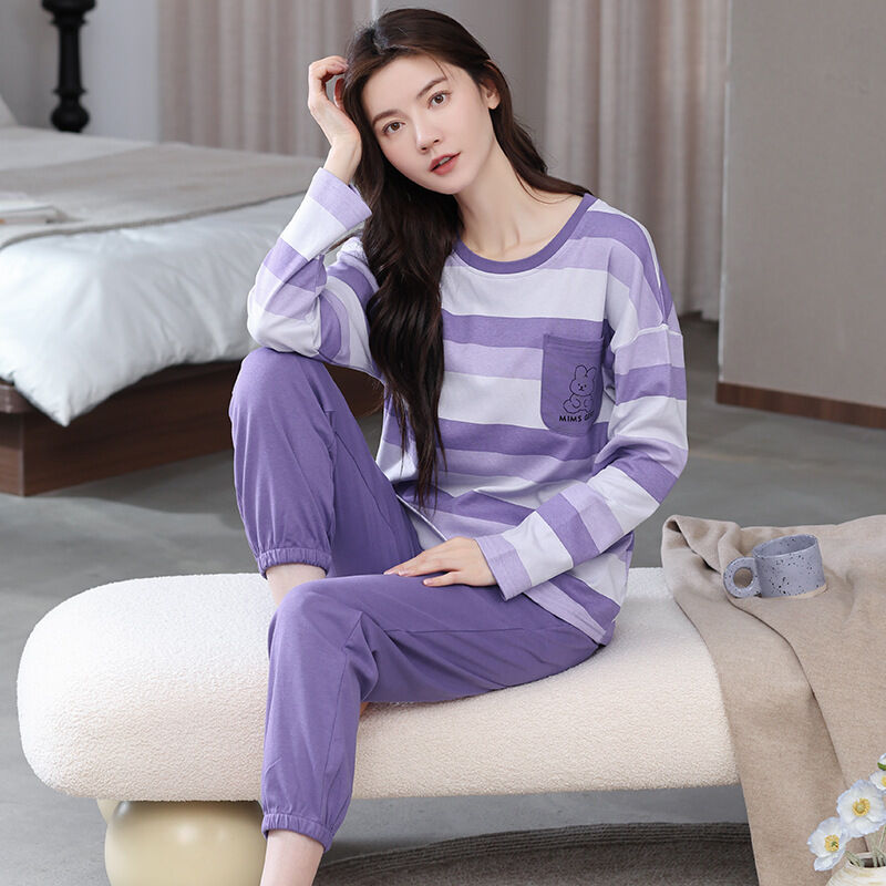 雲溪 全棉加厚睡衣女士春秋季套頭長袖長褲純棉圓領ins風高級感家居服