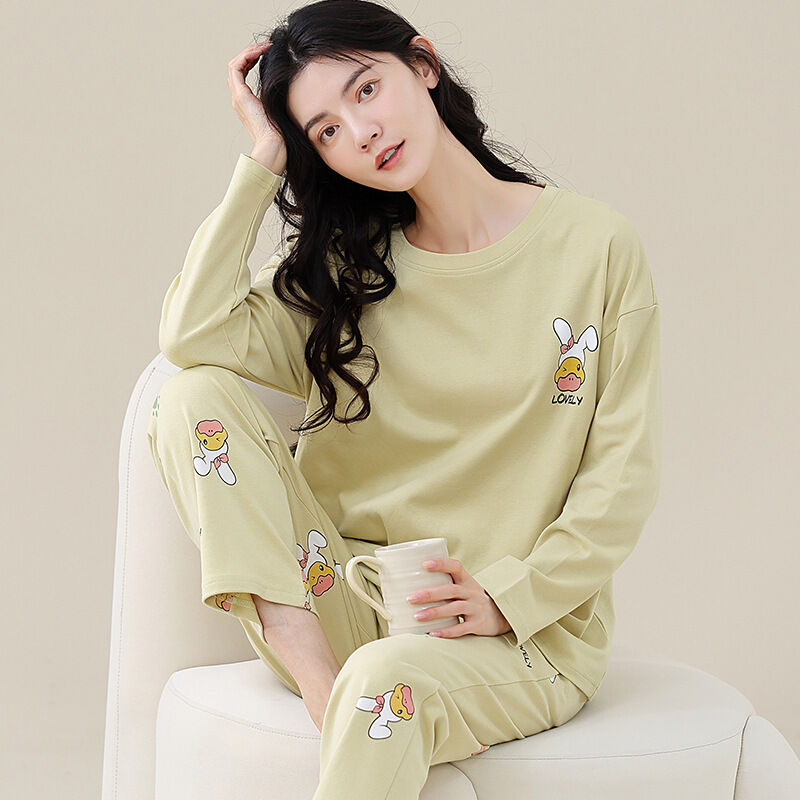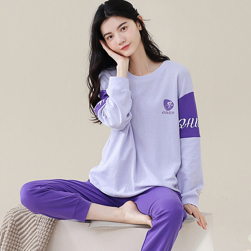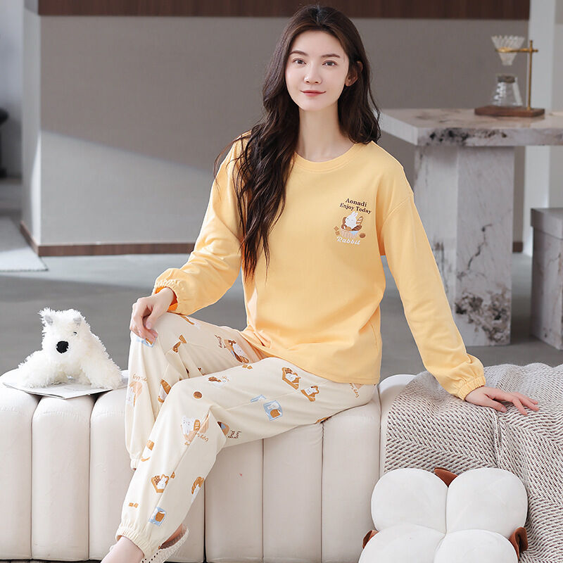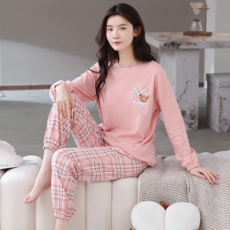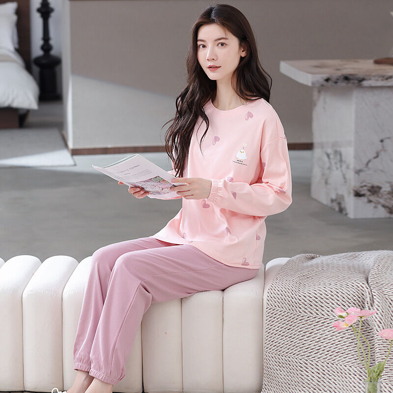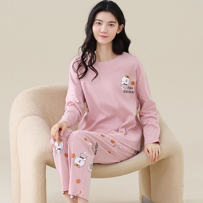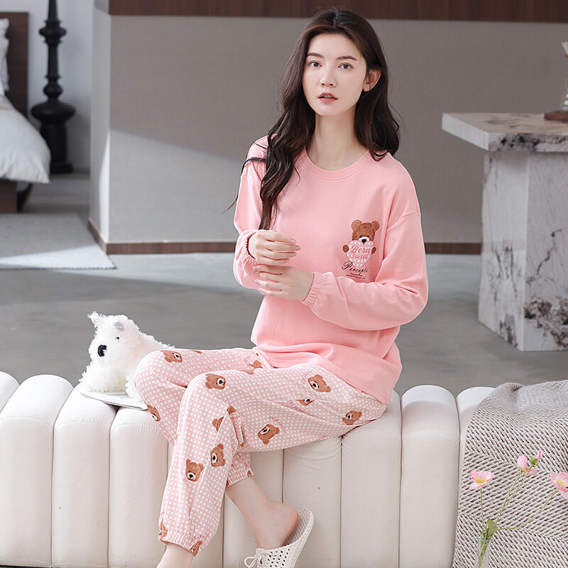 雲溪 全棉加厚睡衣女士春秋季套頭長袖長褲純棉圓領ins風高級感家居服