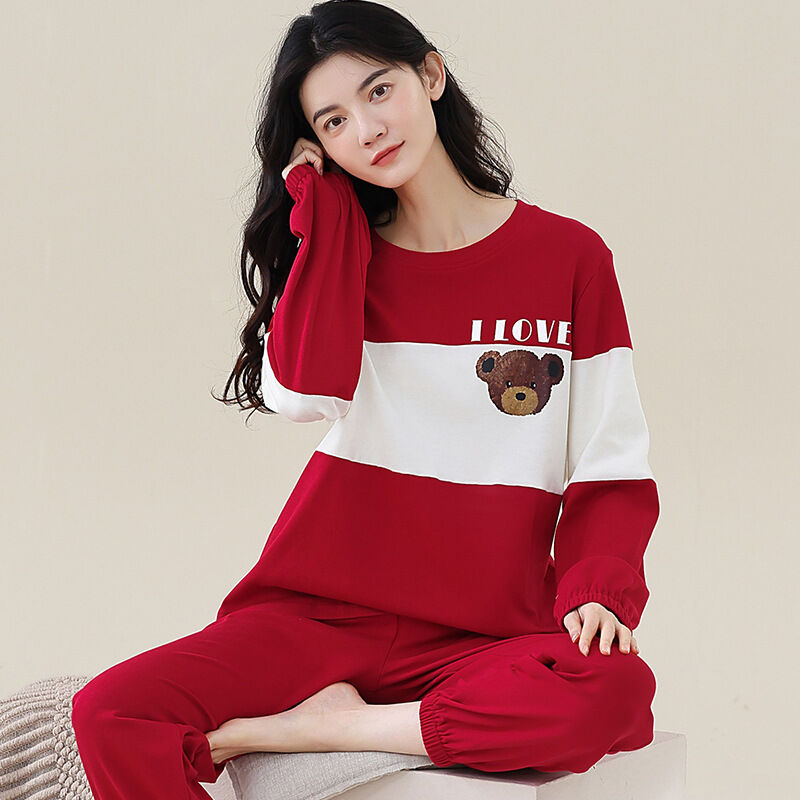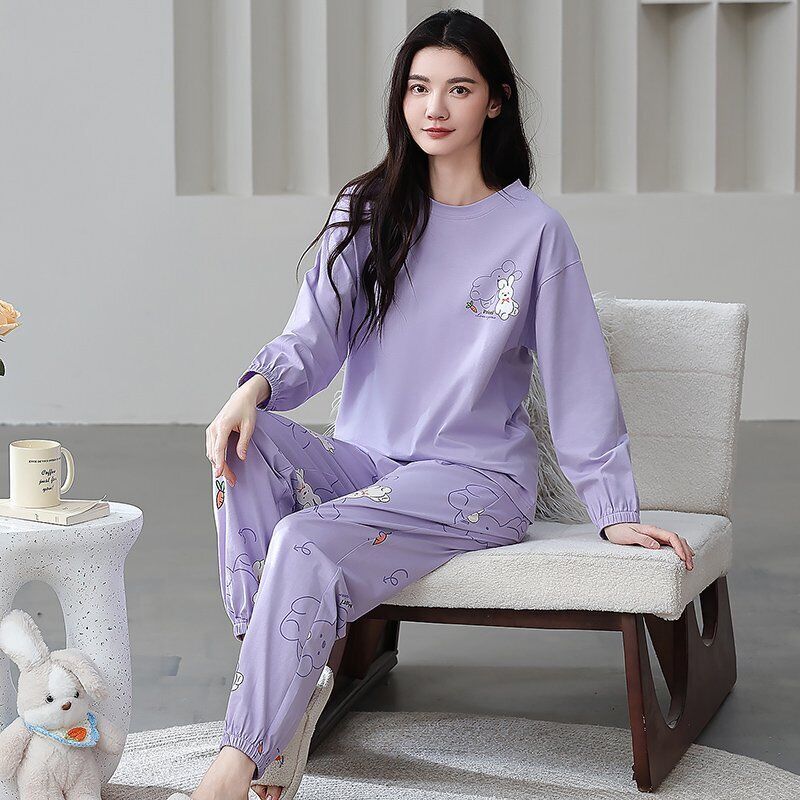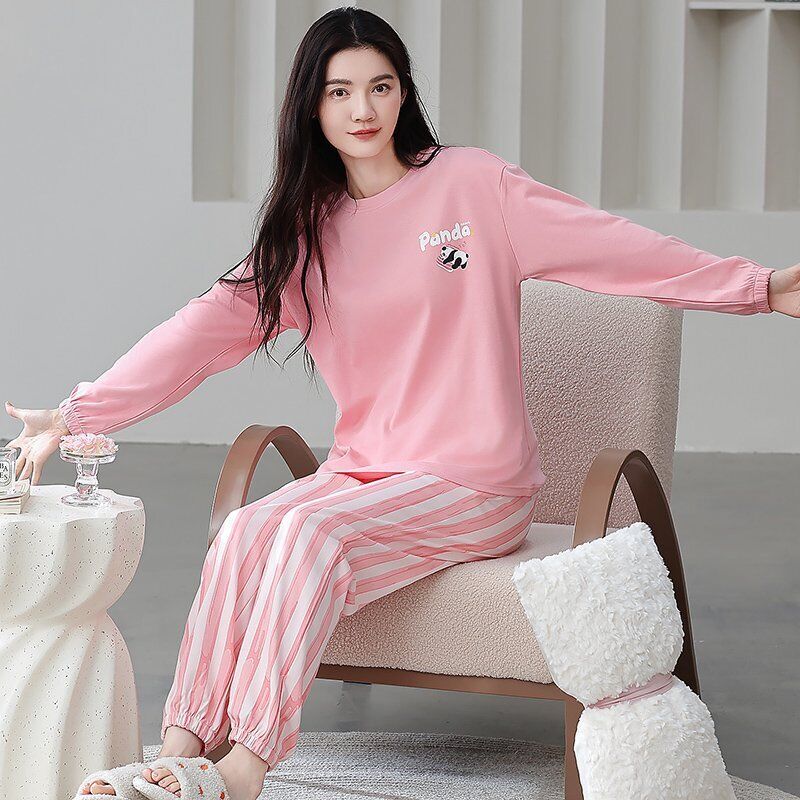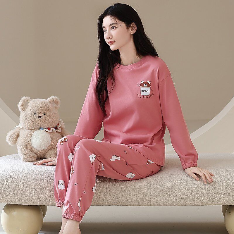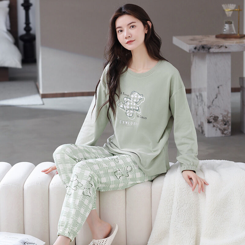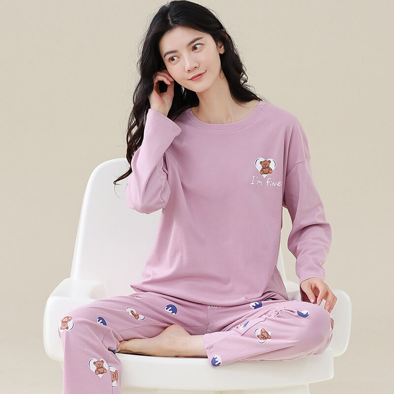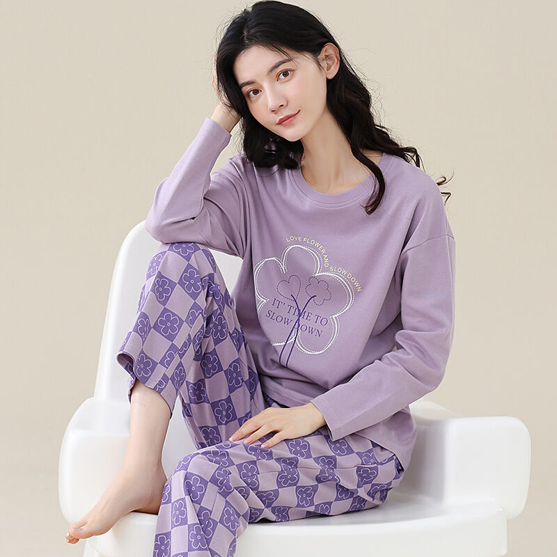 雲溪 全棉加厚睡衣女士春秋季套頭長袖長褲純棉圓領ins風高級感家居服