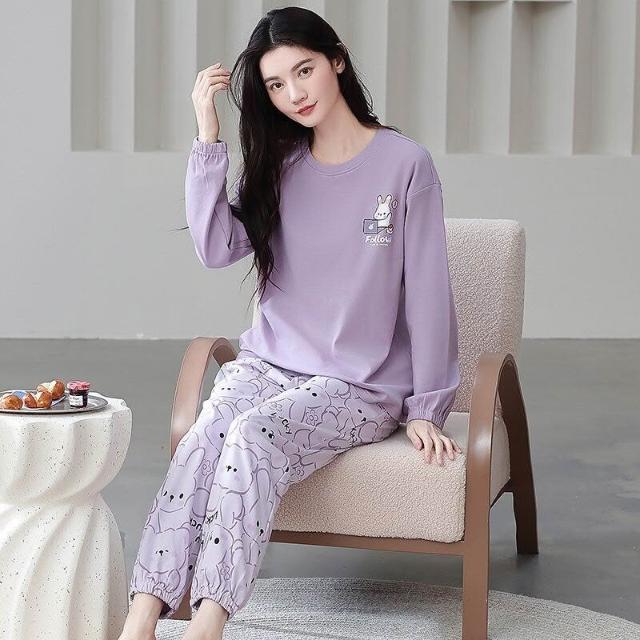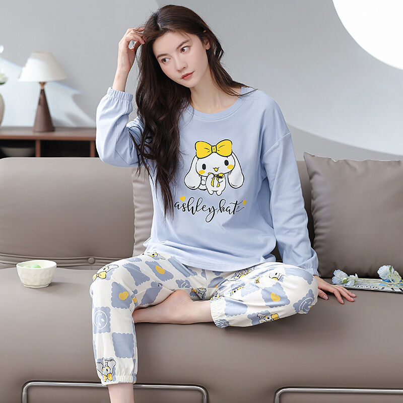 雲溪 全棉加厚睡衣女士春秋季套頭長袖長褲純棉圓領ins風高級感家居服