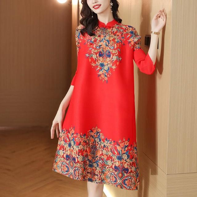$雲溪$ 褶皺連衣裙抖抖彈簧改良旗袍秋裝2026年新款高端氣質復古大碼女裝
