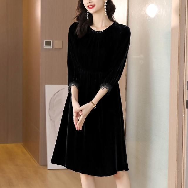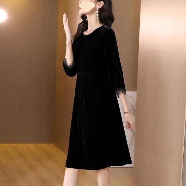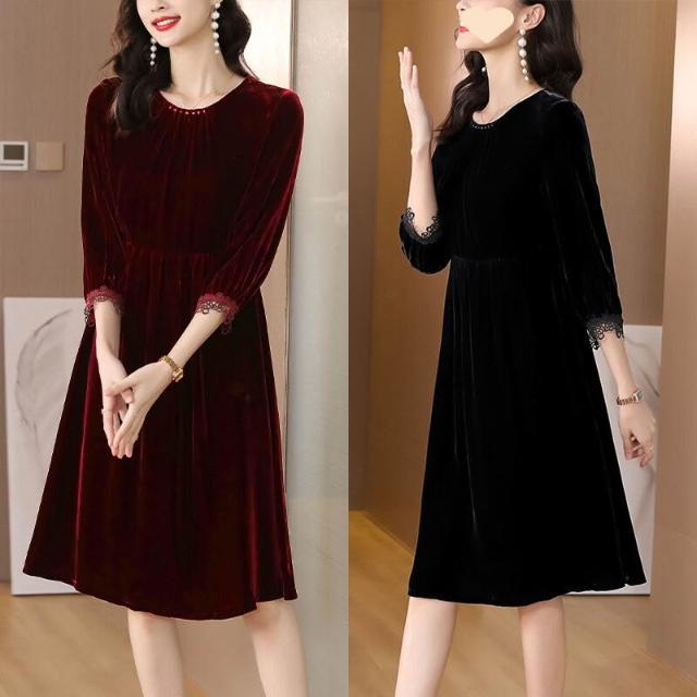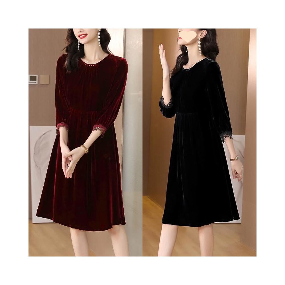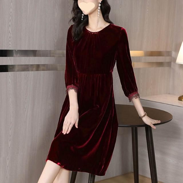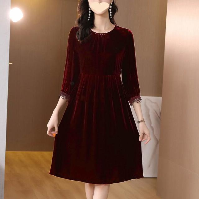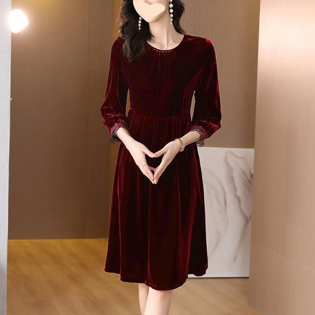 $雲溪$ 2025新款紅色金絲絨連衣裙女裝春秋季長袖裙子氣質