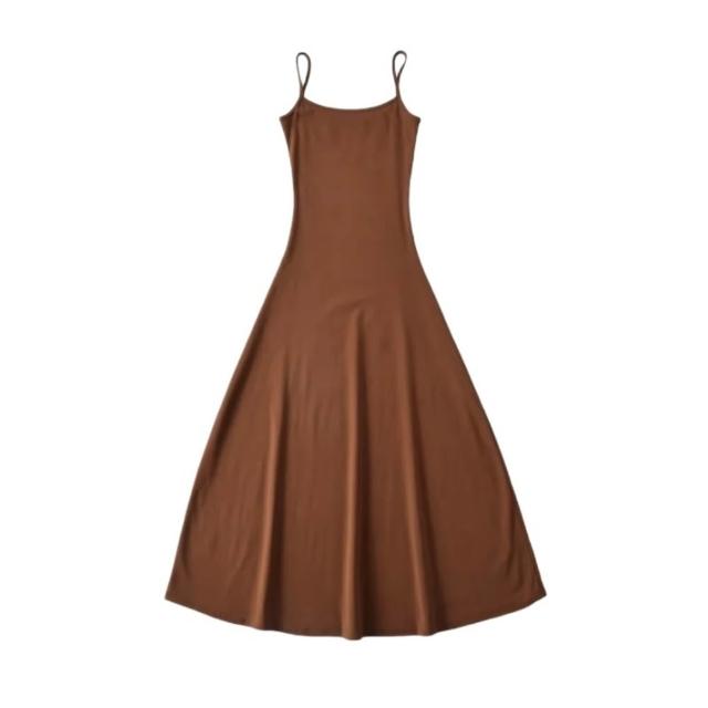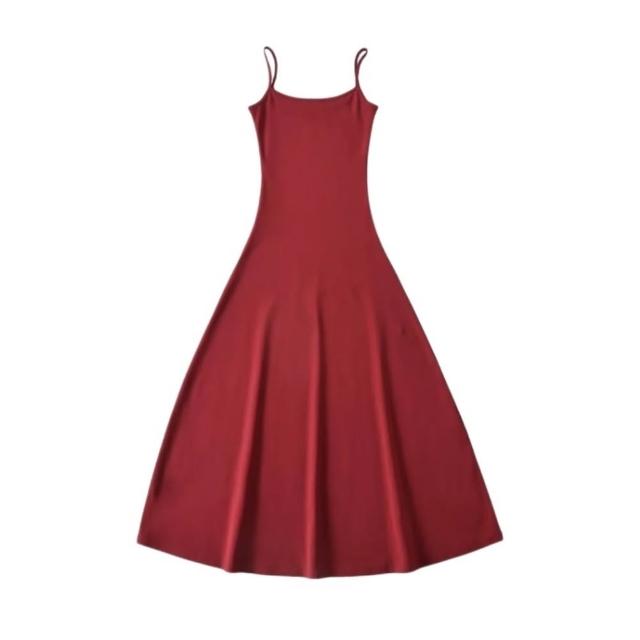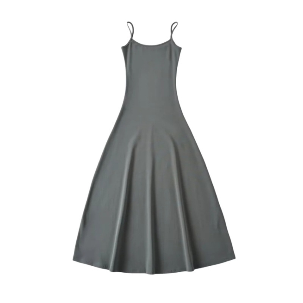 <雲溪> 性感吊帶連衣裙夏季少女修身彈力外穿打底辣妹簡約過膝大擺長裙
