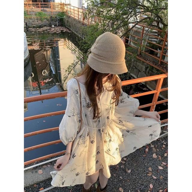 <雲溪> 法式重工刺繡連衣裙女 夏季出遊度假收腰顯瘦娃娃裙 氣質碎花短裙子