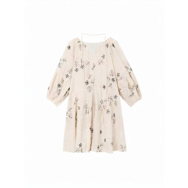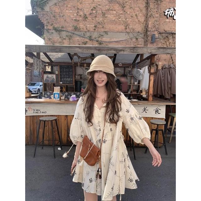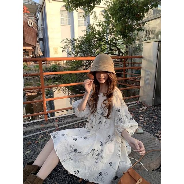 <雲溪> 法式重工刺繡連衣裙女 夏季出遊度假收腰顯瘦娃娃裙 氣質碎花短裙子