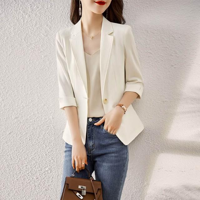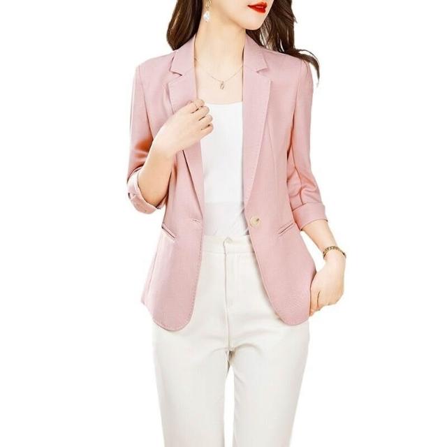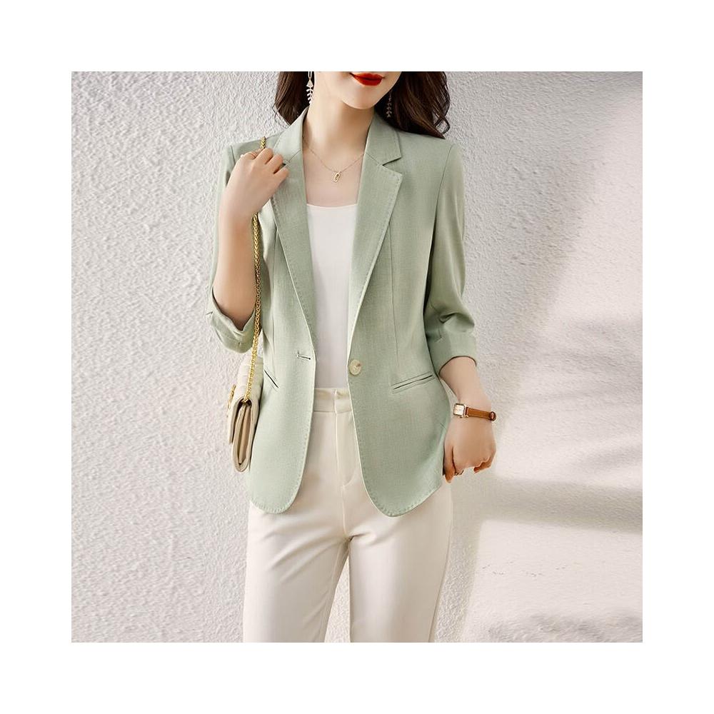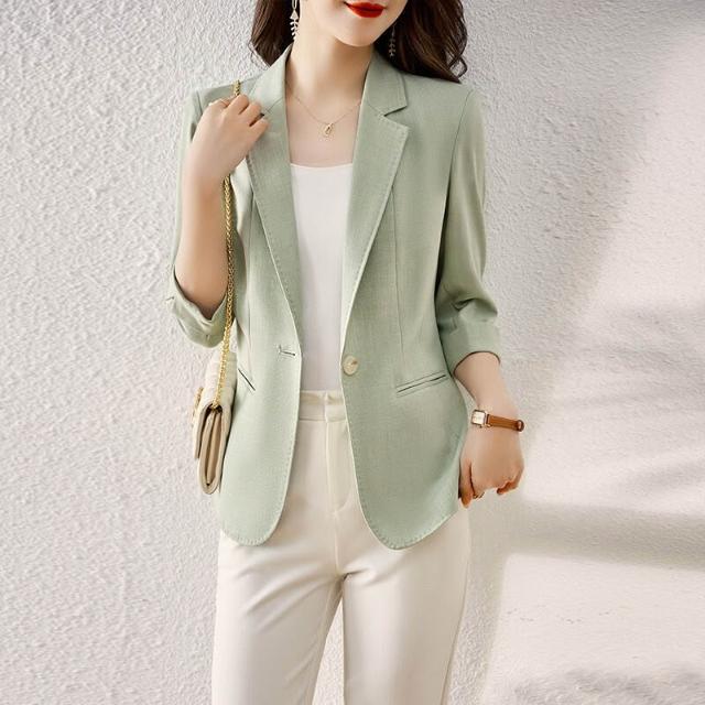 &雲溪& 小西裝外套女夏季薄款新款春夏七分袖上衣高級感綠色亞麻西服