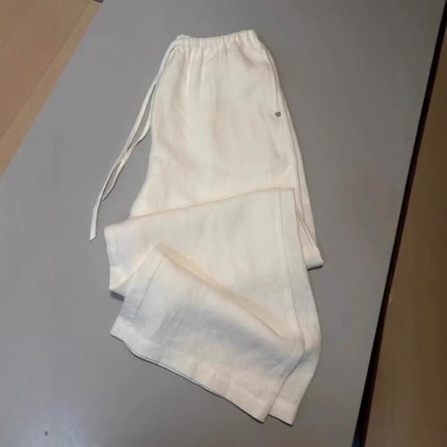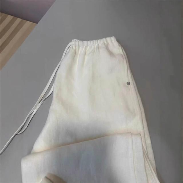 «雲溪» 推薦!寶藏褲!舒適透氣亞麻白色松緊腰抽繩闊腿長褲子女2025夏季