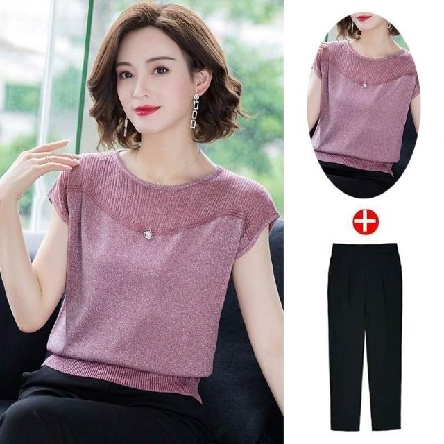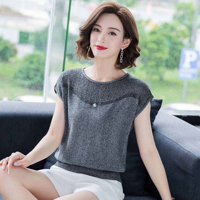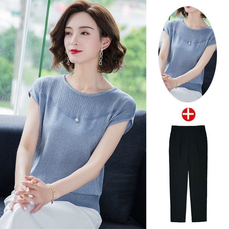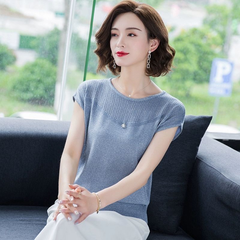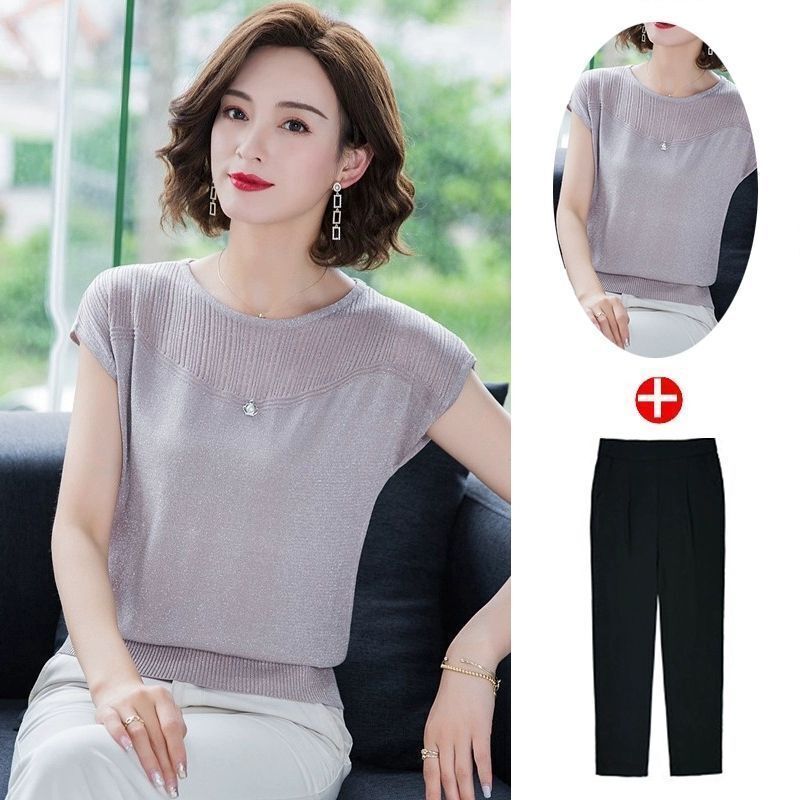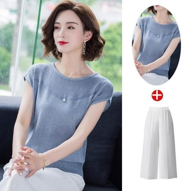 雲溪 母親節媽媽夏裝新款冰絲短袖t恤中年女洋氣上衣服中老年針織小衫