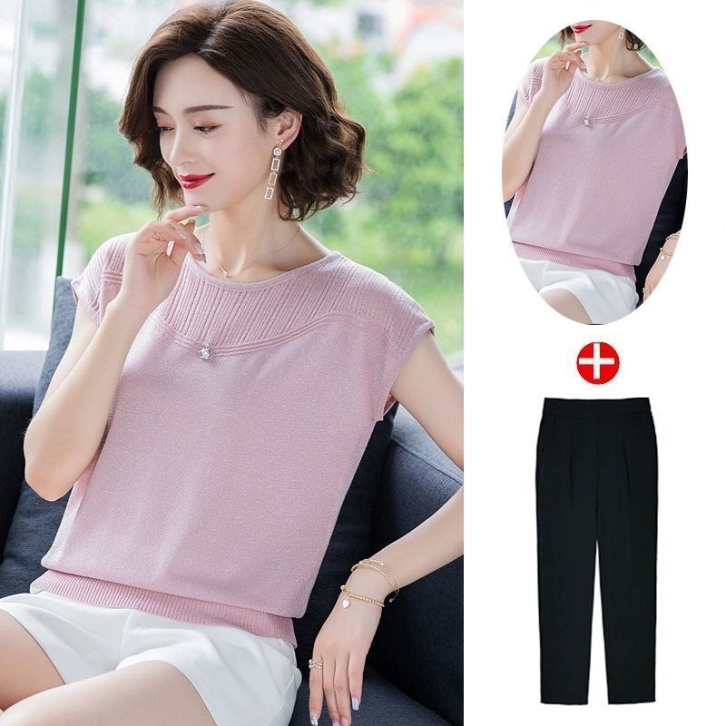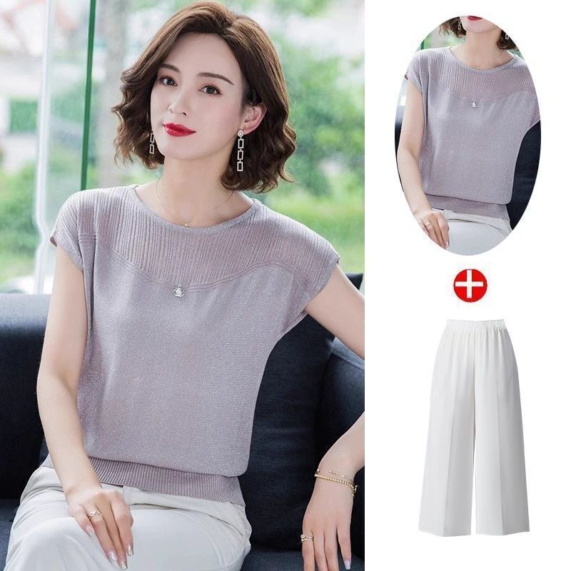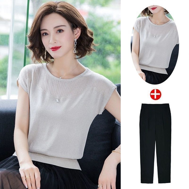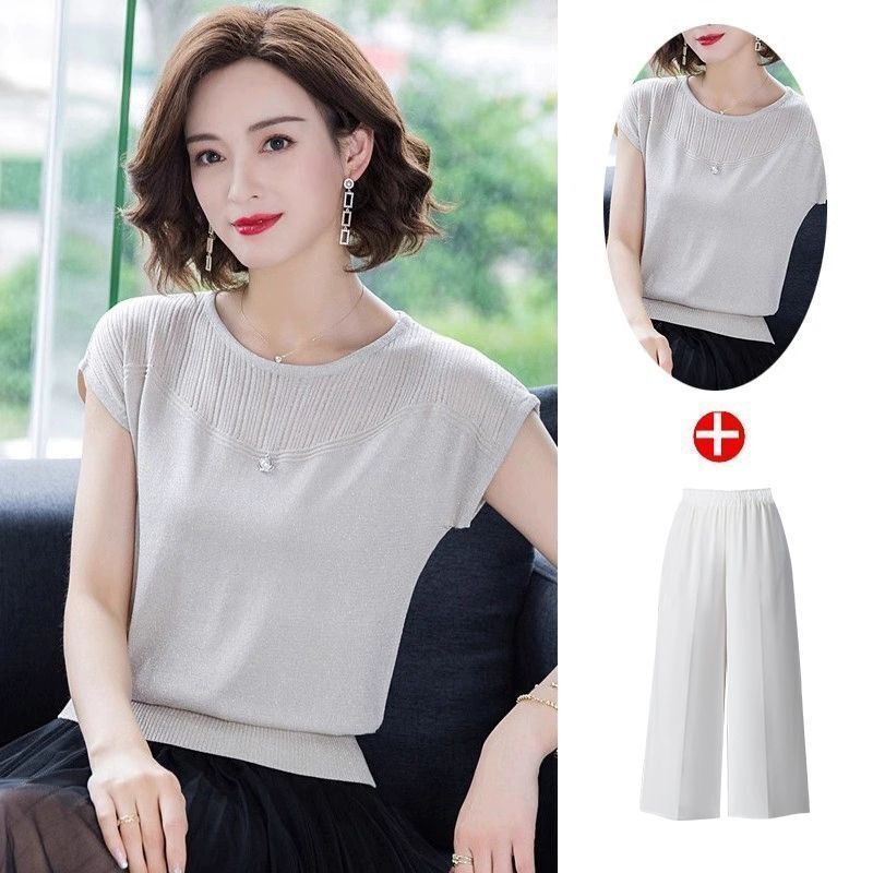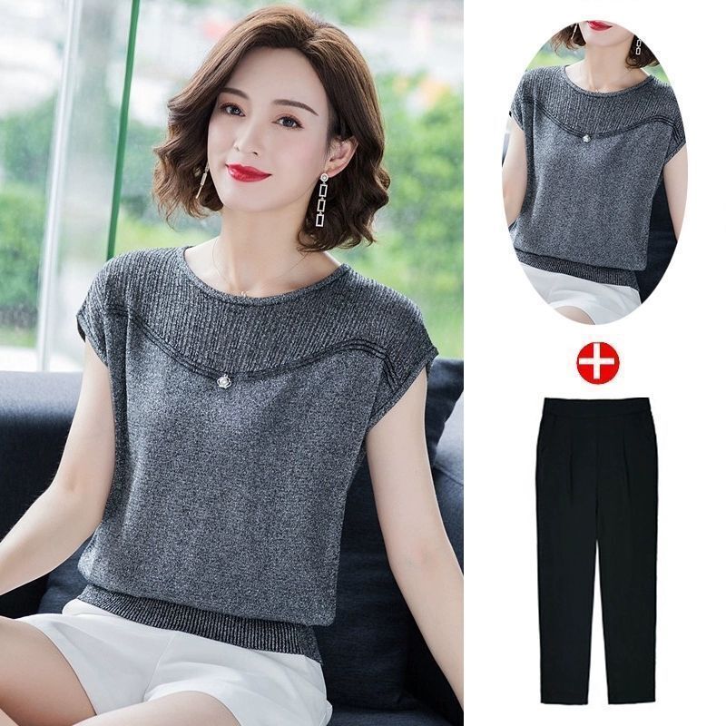 雲溪 母親節媽媽夏裝新款冰絲短袖t恤中年女洋氣上衣服中老年針織小衫