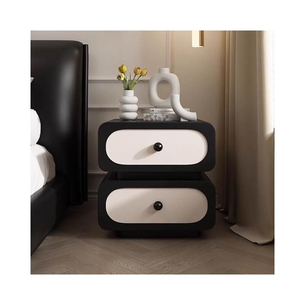 雲溪 輕奢實木床頭櫃簡約現代法式奶油風儲物櫃黑色皮質床邊櫃收納Z-20