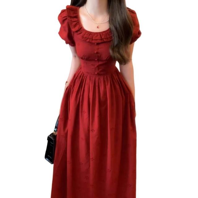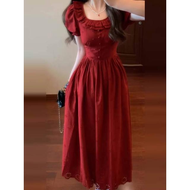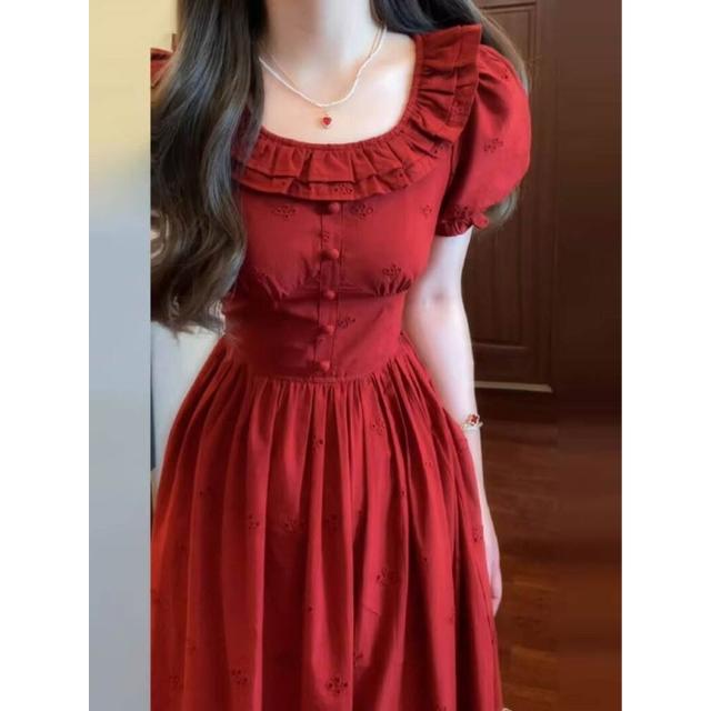 雲溪 茶歇法式紅色連衣裙女夏季2026新款氣質收腰小個子絕美長裙高級感