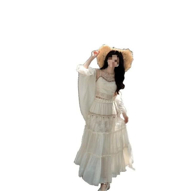 雲溪 波西米亞民族風流蘇吊帶背心防曬開衫三件套裝女夏蕾絲拼接半身裙