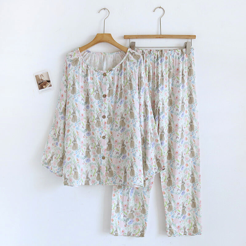 雲溪 睡衣女春夏甜美網紅風家居服清新竹纖維休閑睡衣長袖長褲套裝