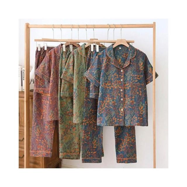 雲溪 三件套新款提花色織純棉春夏秋款開衫短袖短褲長褲家居服女士套裝
