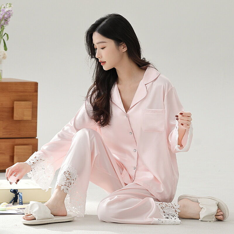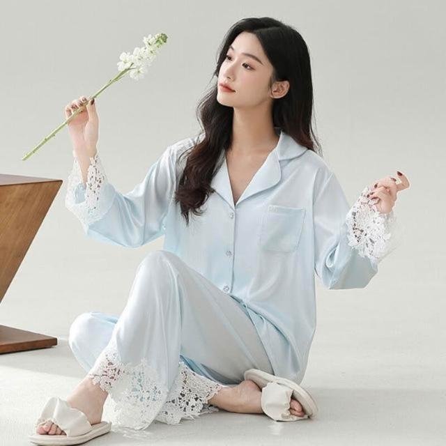 雲溪 冰絲睡衣女春夏套裝送閨蜜高級家居服禮盒刺繡款輕奢
