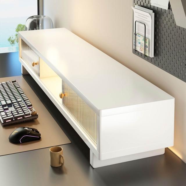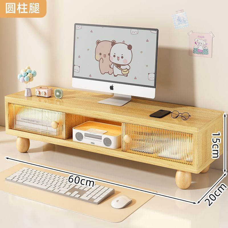 雲溪 臺式電腦顯示器增高架辦公室桌面工位筆記本支架滑門置物架帶抽屜