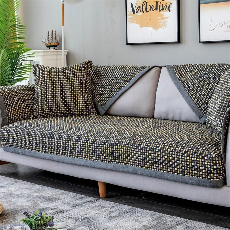 雲溪 棉麻四季沙發墊布藝通用加厚簡約現代亞麻沙發巾歐式時尚實木防滑
