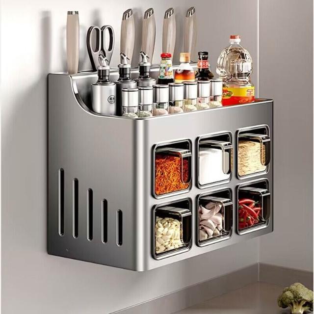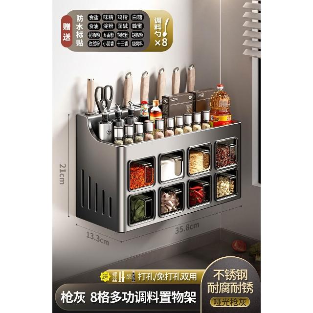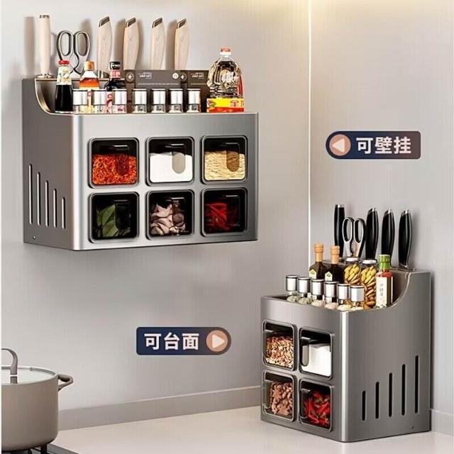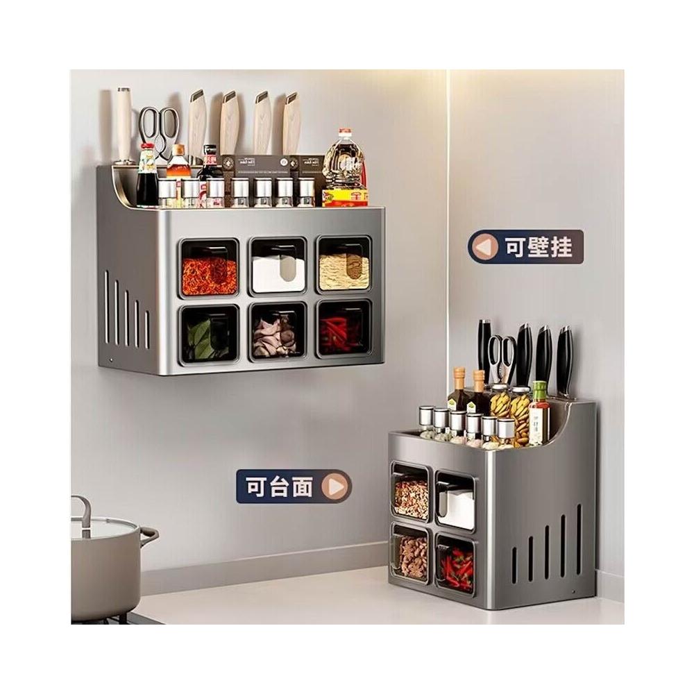 雲溪 廚房置物架臺面壁掛式調料架家用佐料調味罐多功能收納架子刀架