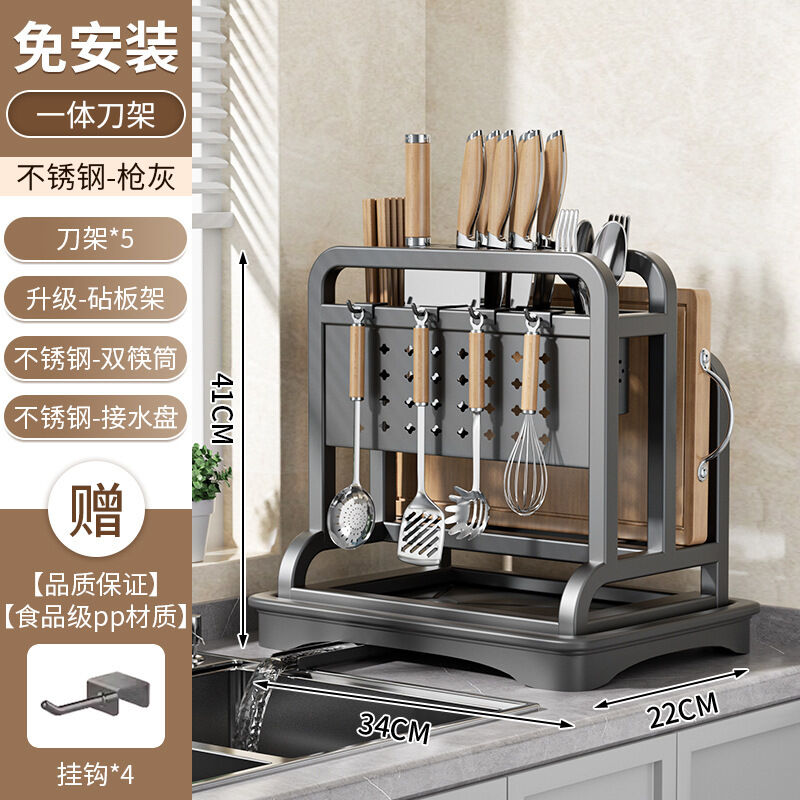 雲溪 廚房刀架置物架多功能家用菜刀鍋蓋砧板筷子臺面瀝水刀具收納架子