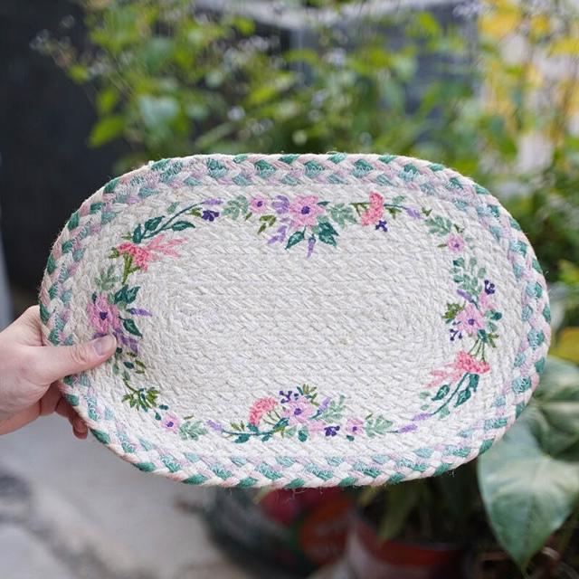雲溪 橢圓形田園風格麻繩編織杯墊碗墊隔熱墊碗餐墊墊手作裝飾簡約
