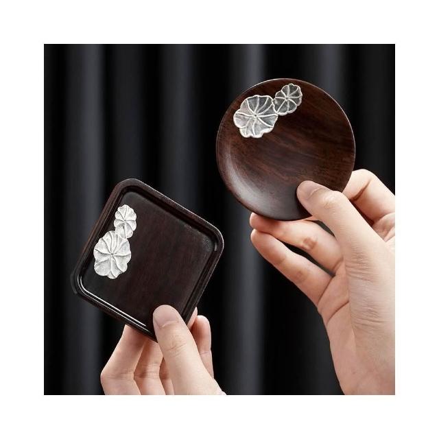 雲溪 創意復古黑檀木隔熱餐墊 鑲錫工藝打磨光滑茶道咖啡水杯杯墊