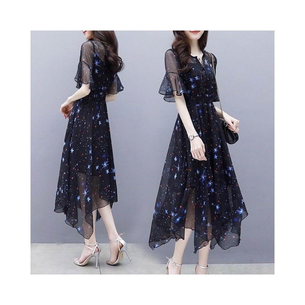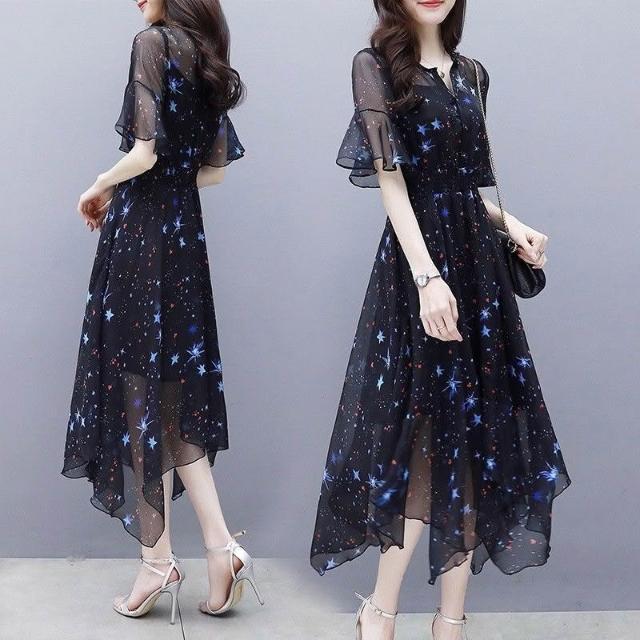 雲溪 大碼100公斤女裝收腰顯瘦長裙子 胖mm遮肚雪紡碎花連衣裙女夏裝