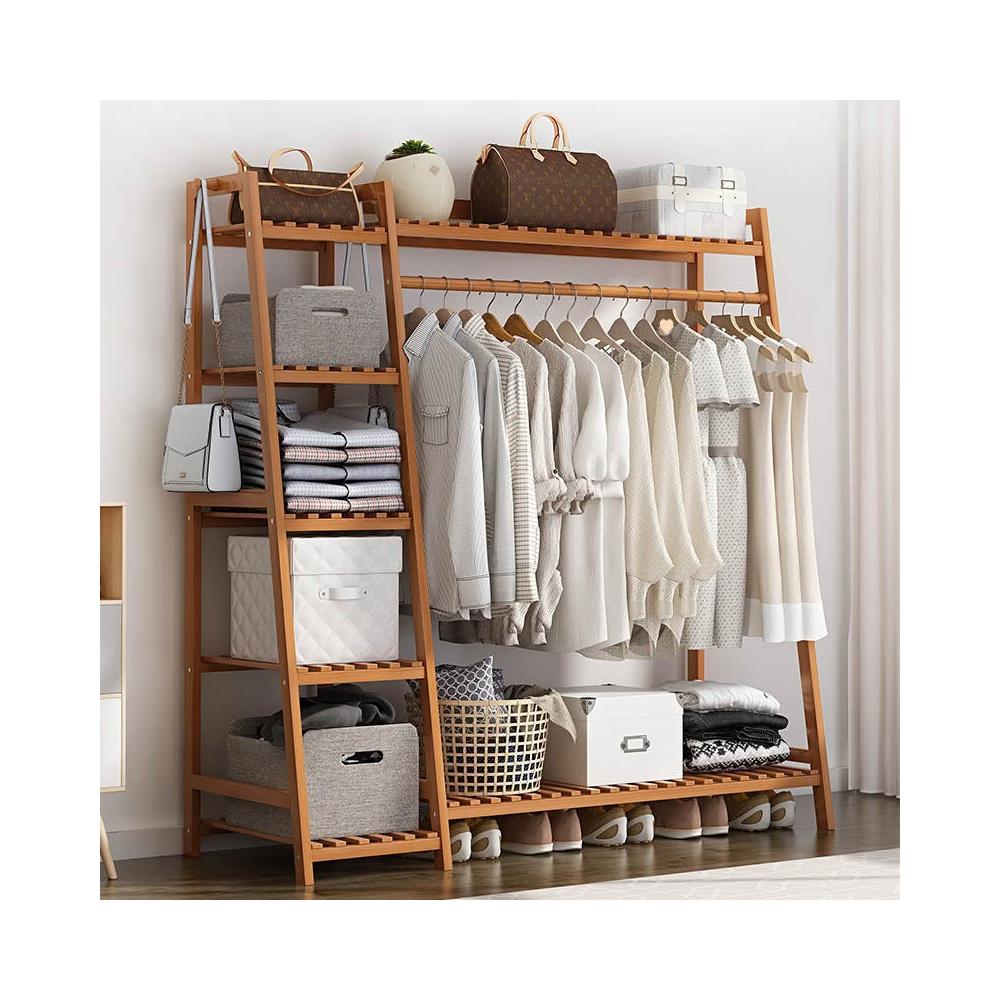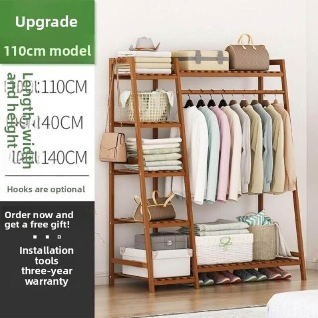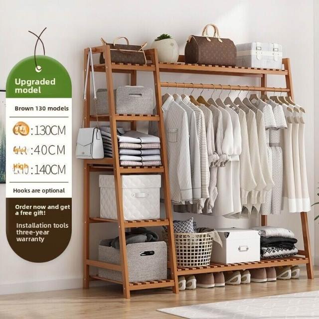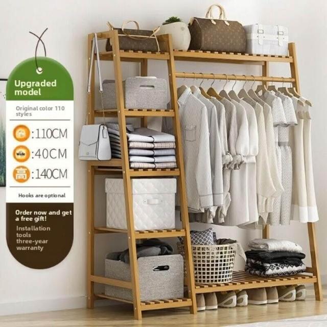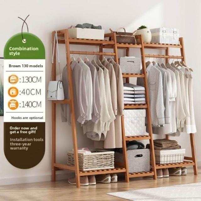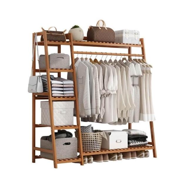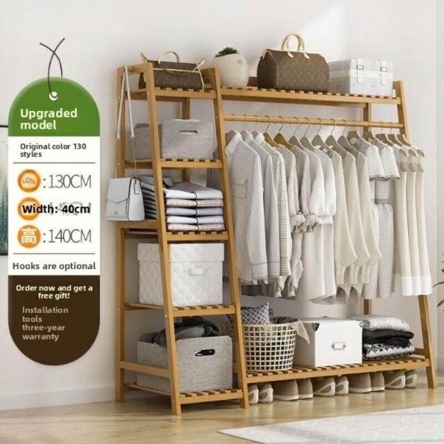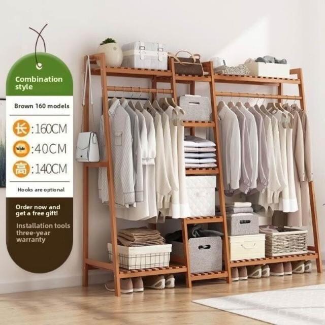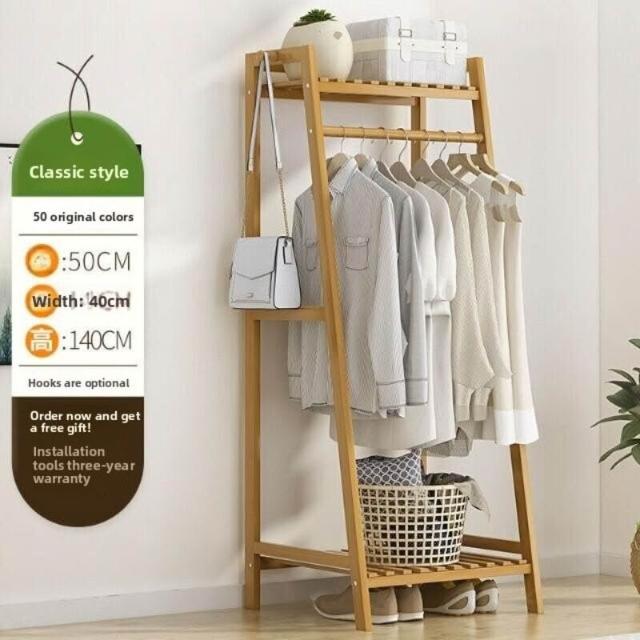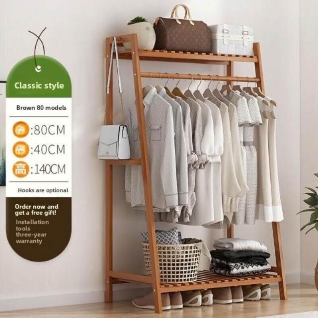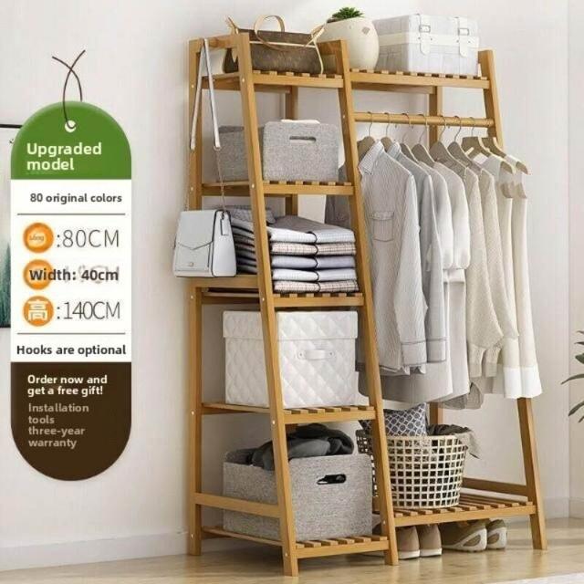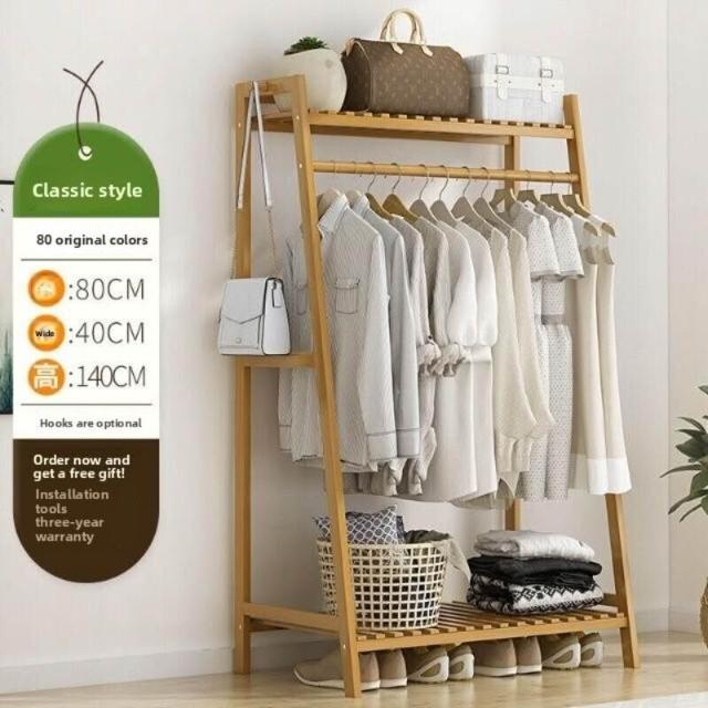 雲溪 房間簡易掛衣架子 落地臥室省空間家用多功能實木質櫃創意服衣帽架