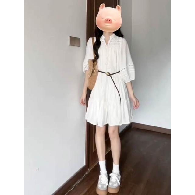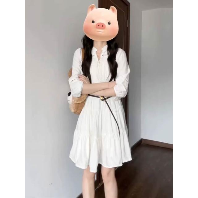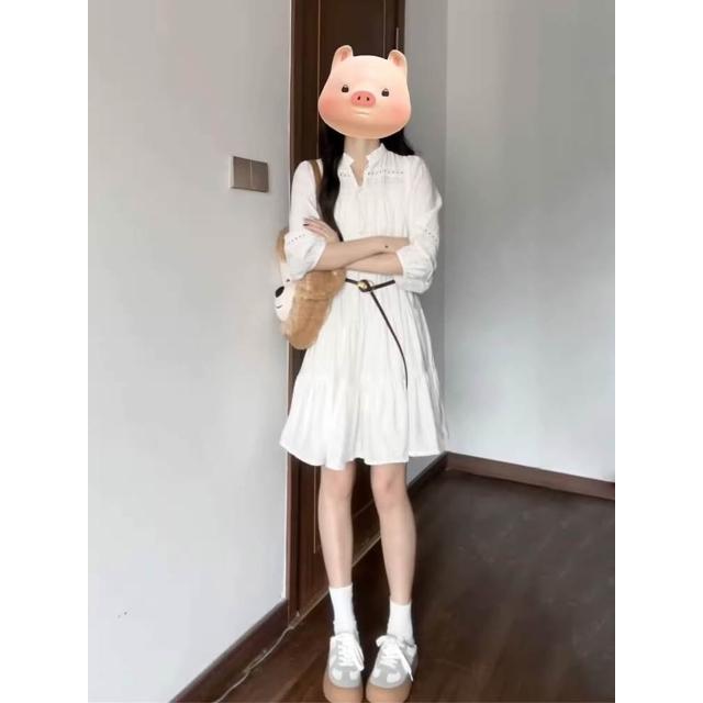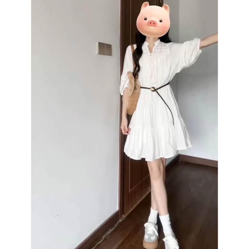 雲溪 法式絕美小個子白色連衣裙女夏季新款氣質別致镂空系帶A字短裙ins