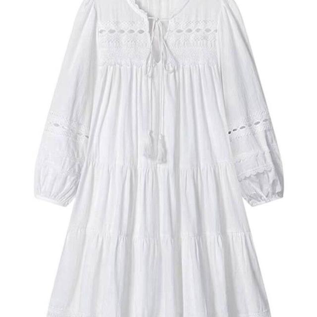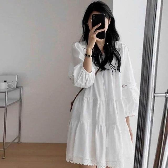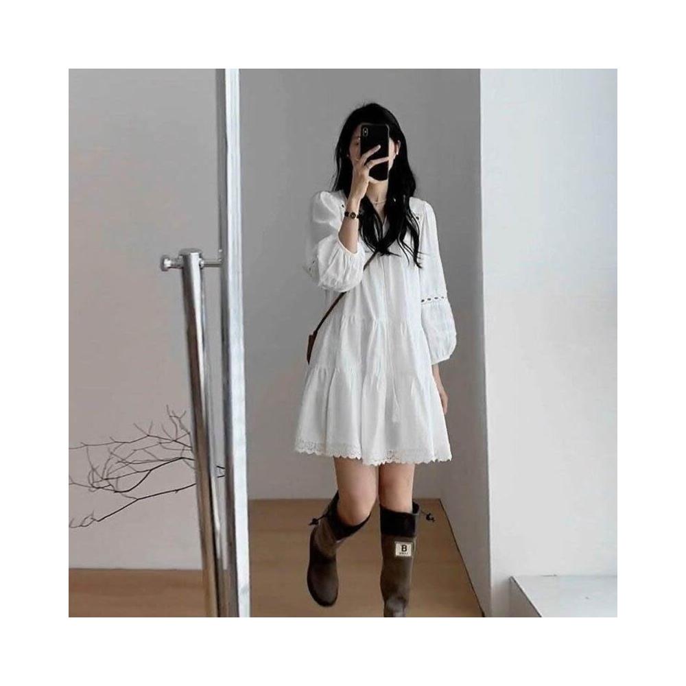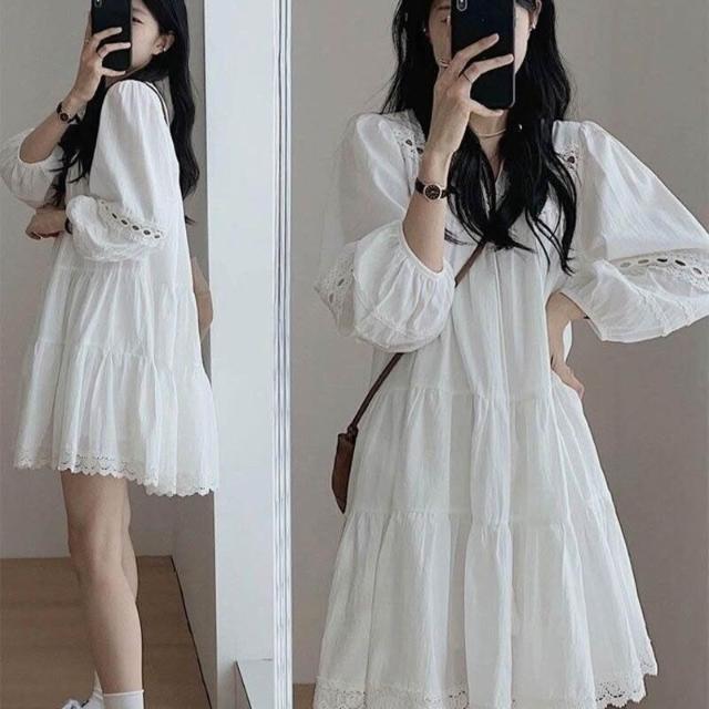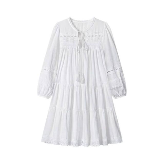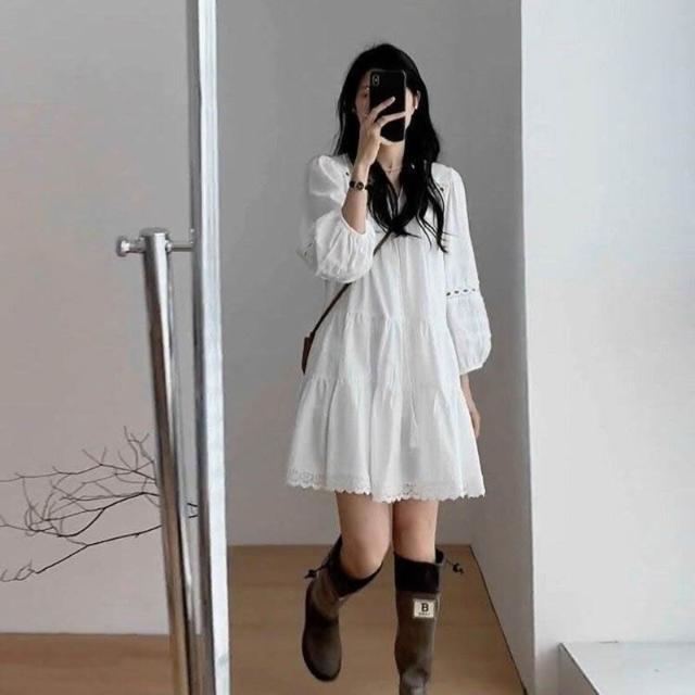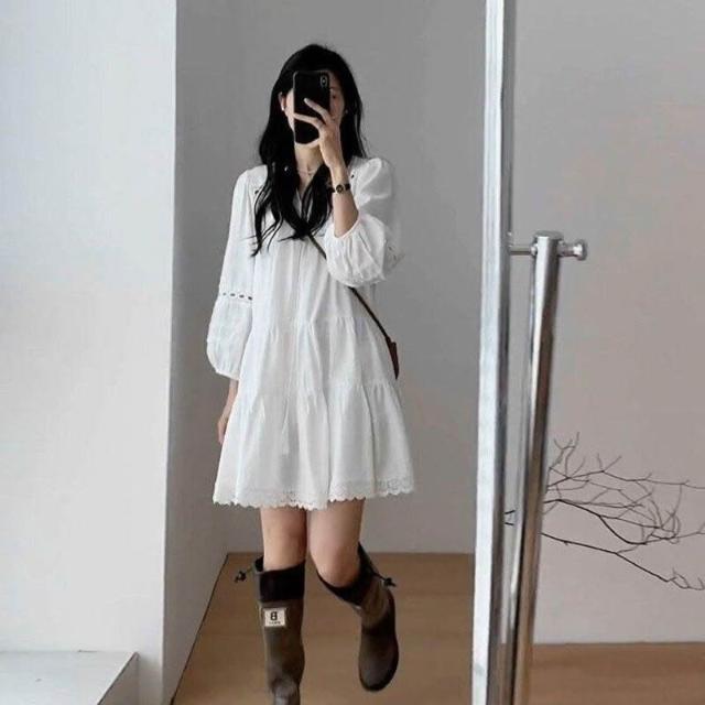 雲溪 法式白色連衣裙女春夏新款小個子氣質百搭寬松顯瘦長袖A字短裙子