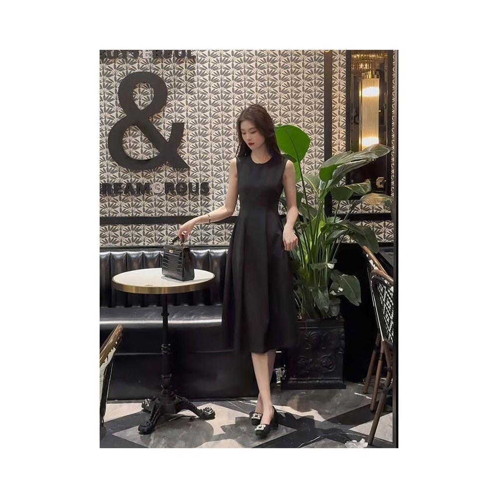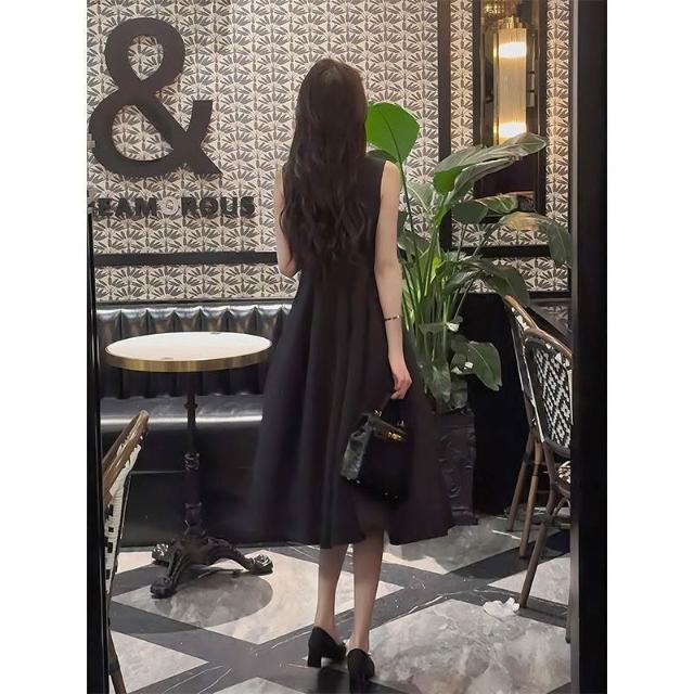 黑色氣質顯瘦連衣裙女夏季新款小個子法式開叉長裙子韓版