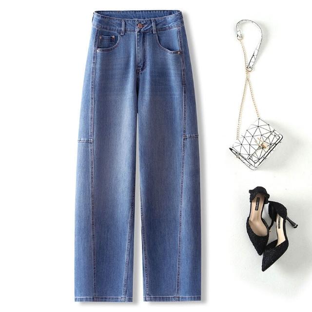 2026春夏新款遮肉顯瘦彎刀牛仔褲女立體剪裁高腰褲子