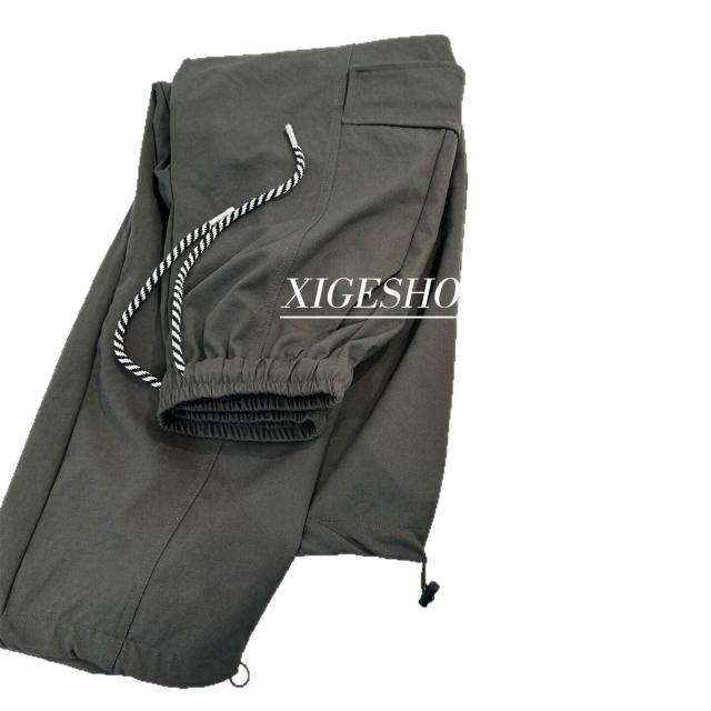 韓系休閑工裝褲女秋新款抽繩高腰寬松束腳兩穿闊腿褲直筒長褲