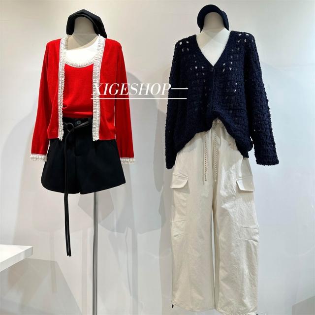 韓系休閑工裝褲女秋新款抽繩高腰寬松束腳兩穿闊腿褲直筒長褲