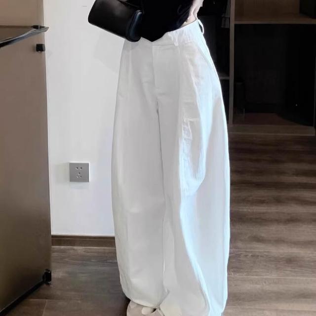 chao級推薦!極簡白色彎刀休閑褲女春夏新款寬松直筒闊腿燈籠褲