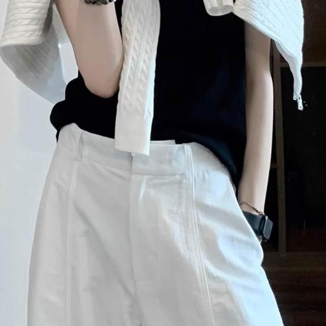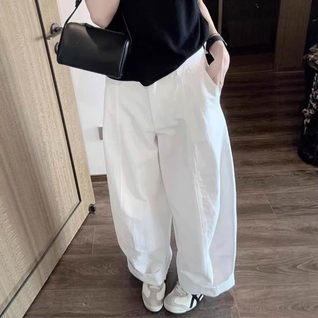 chao級推薦!極簡白色彎刀休閑褲女春夏新款寬松直筒闊腿燈籠褲