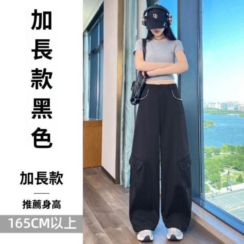 實拍2026春夏新款彎刀工裝褲闊腿高腰休閑兩穿運動褲拖地褲女