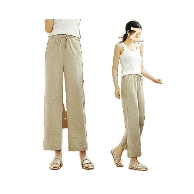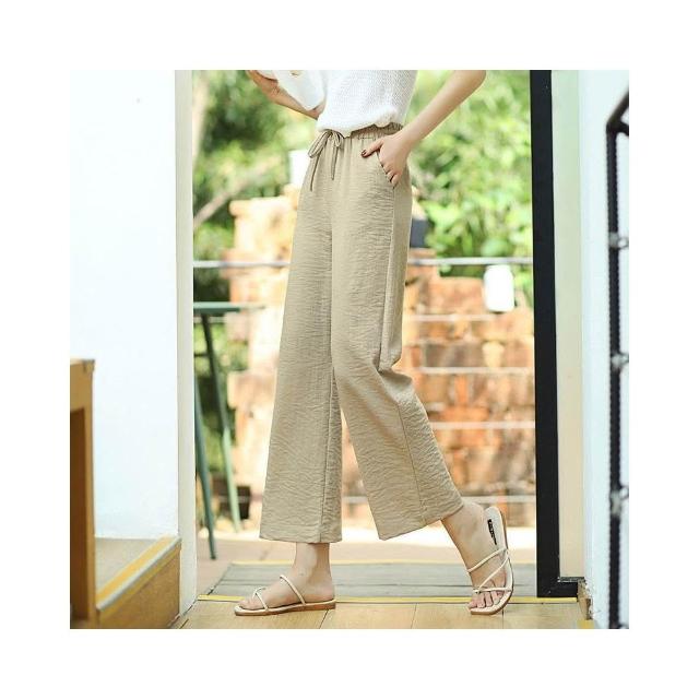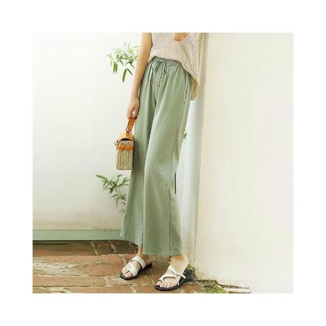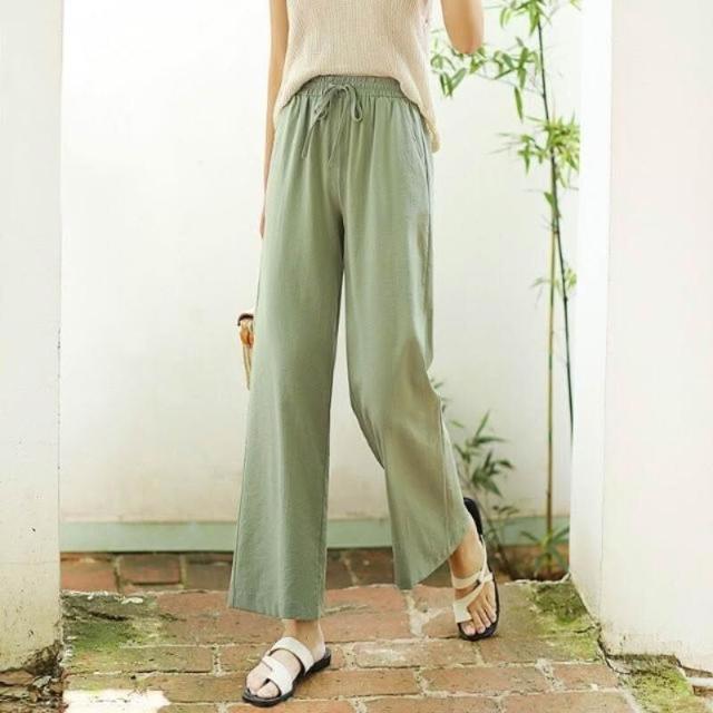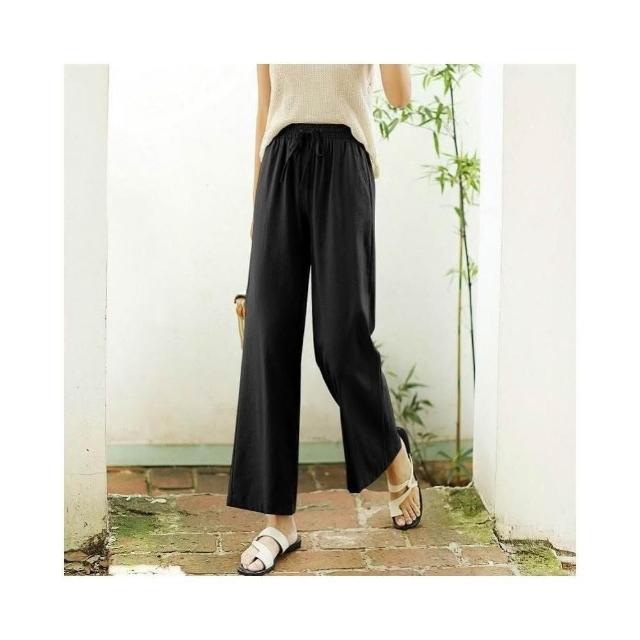 棉麻休閑闊腿褲女 春夏新款亞麻寬松直筒褲 高腰百搭顯瘦九分褲女