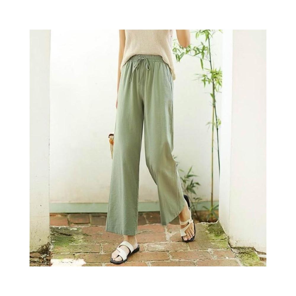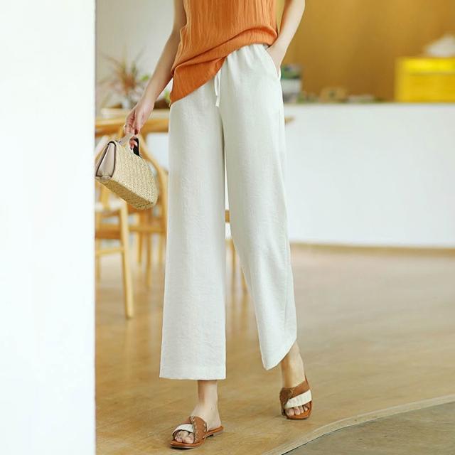 棉麻休閑闊腿褲女 春夏新款亞麻寬松直筒褲 高腰百搭顯瘦九分褲女