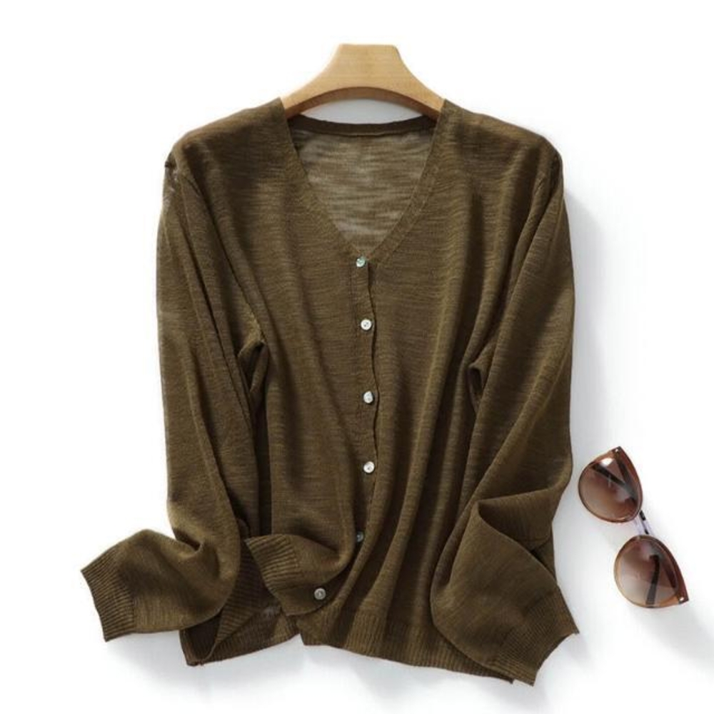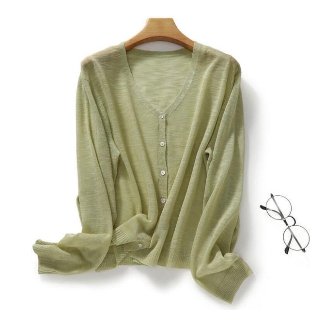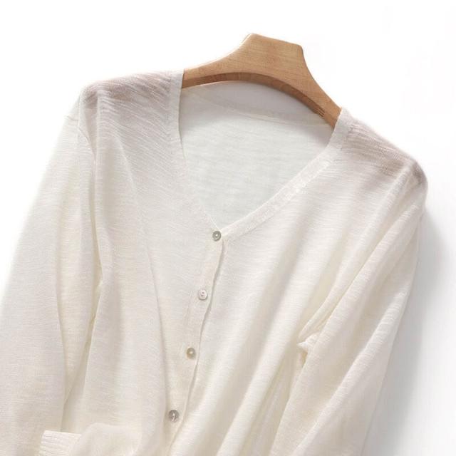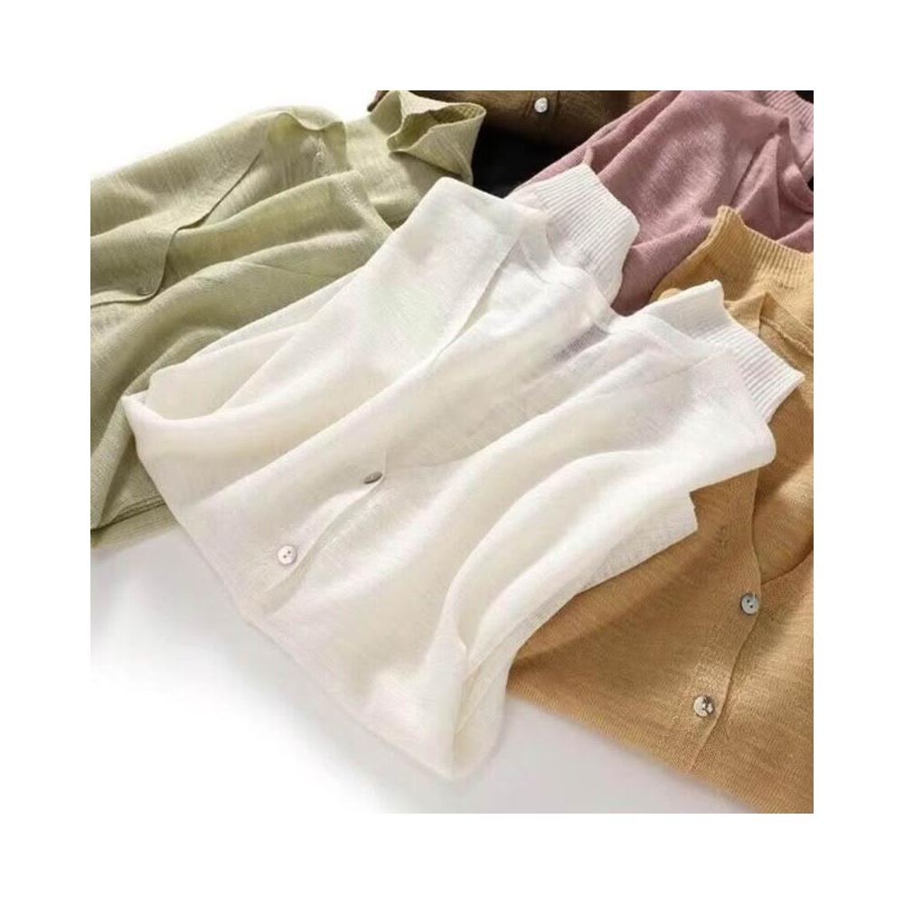 2026亞麻天絲上衣女夏防曬衣冰絲針織開衫V領薄款長袖外套百搭
