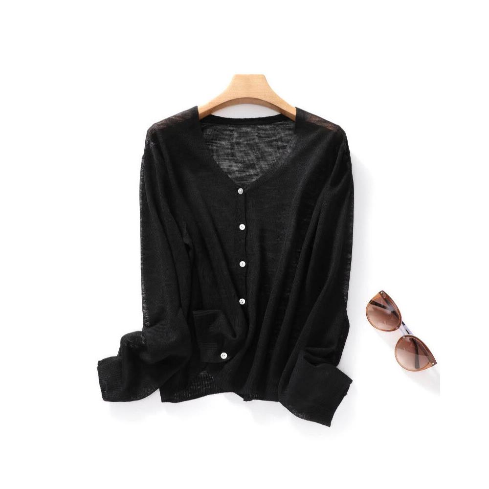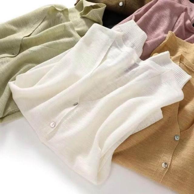 2026亞麻天絲上衣女夏防曬衣冰絲針織開衫V領薄款長袖外套百搭