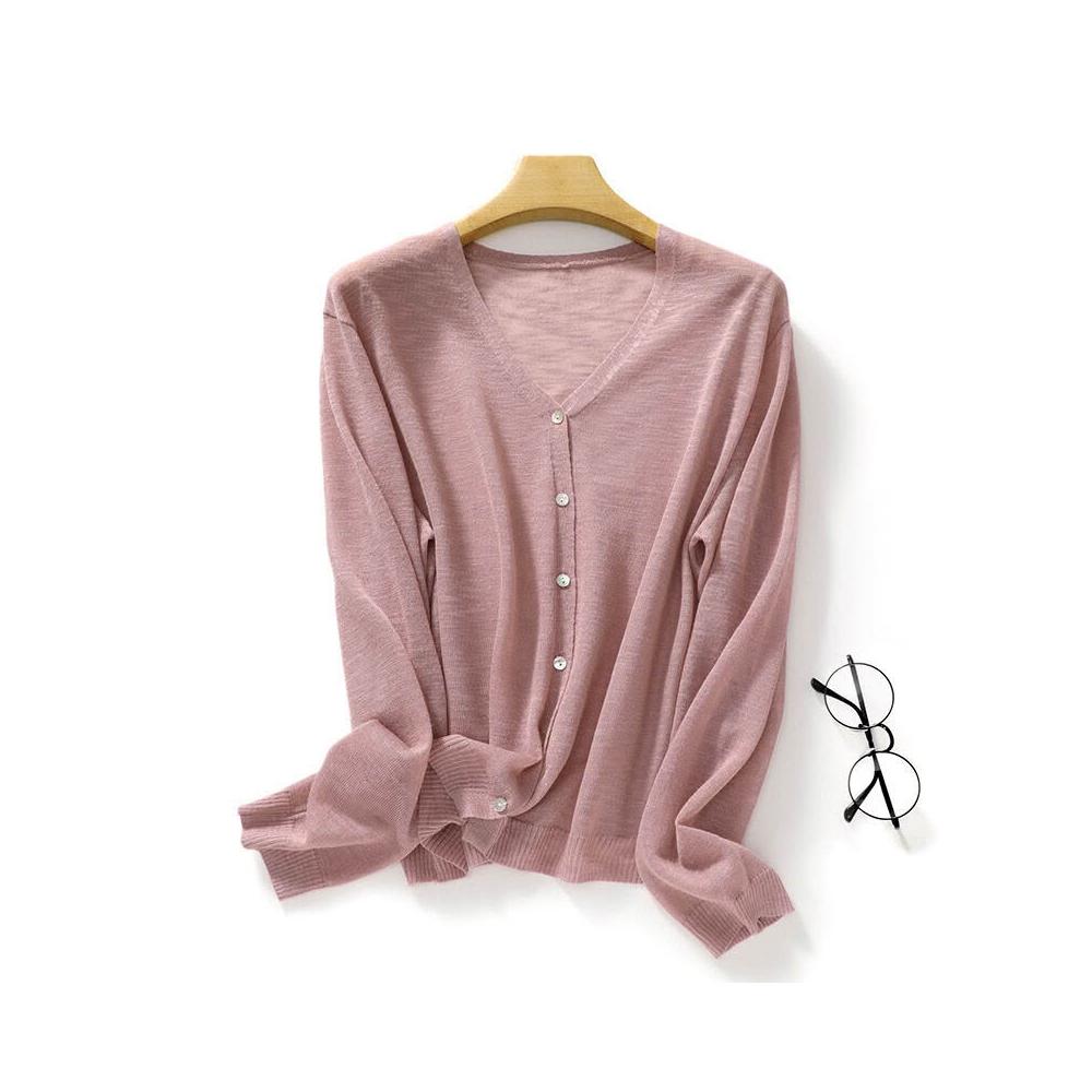 2026亞麻天絲上衣女夏防曬衣冰絲針織開衫V領薄款長袖外套百搭